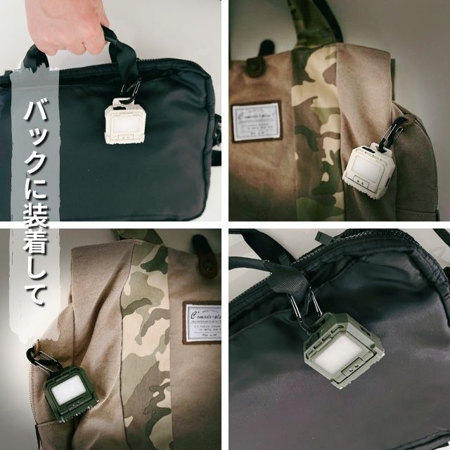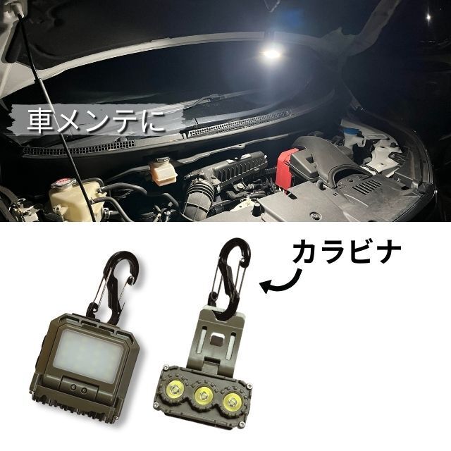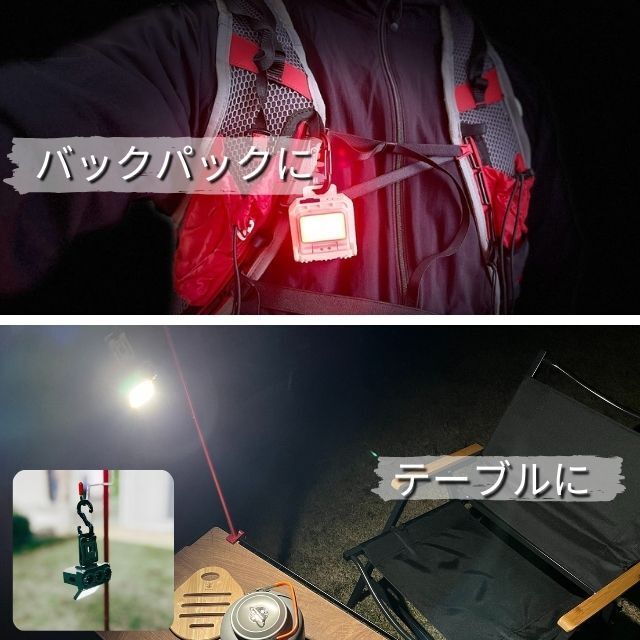 キャンプや夜間作業、停電の時のランタンとしても大変重宝します。専用カラビナを角度調整クリップに付けていろいろなカタチで様々な所に引っかけて使うことができます。