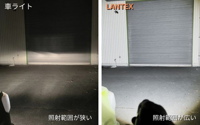 一般的なヘッドライトのルーメンは約30~100ルーメンが一般的で、150ルーメン以上になると高輝度でかなり明るいと言われています。しかし「LANTEX」は1300ルーメンの高輝度で暗闇を昼間のように明るく照らします。