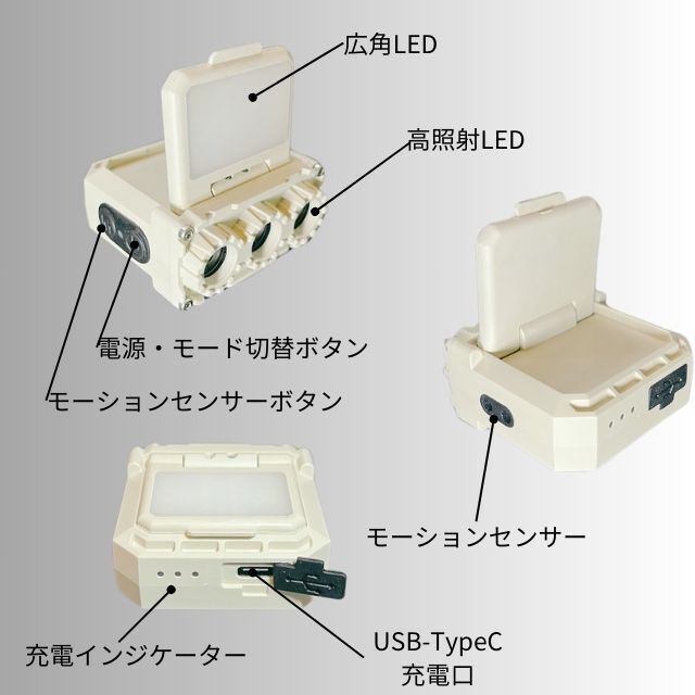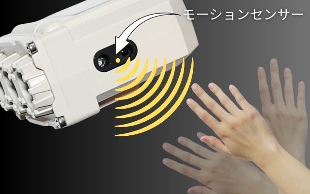 ハンズフリーで使える(モーションセンサー起動時)モーションセンサーは設定したライトモードでON→OFFが可能。