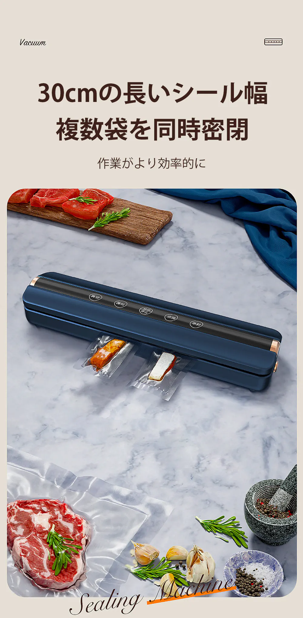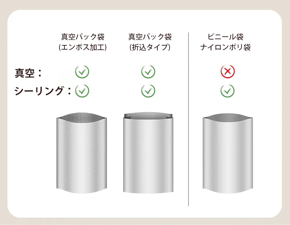 また、大きめの食材でも余裕を持って真空できます。