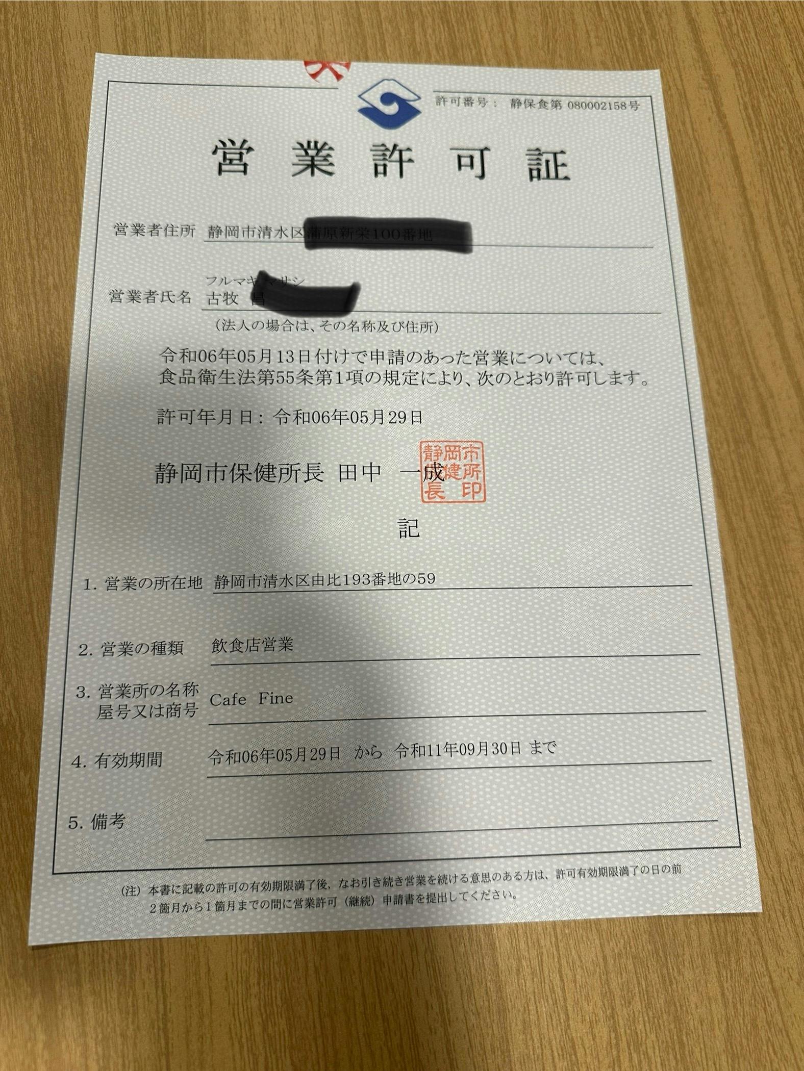 5月下旬 営業許可取得予定・店舗プレオープン