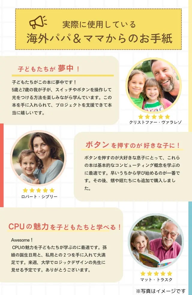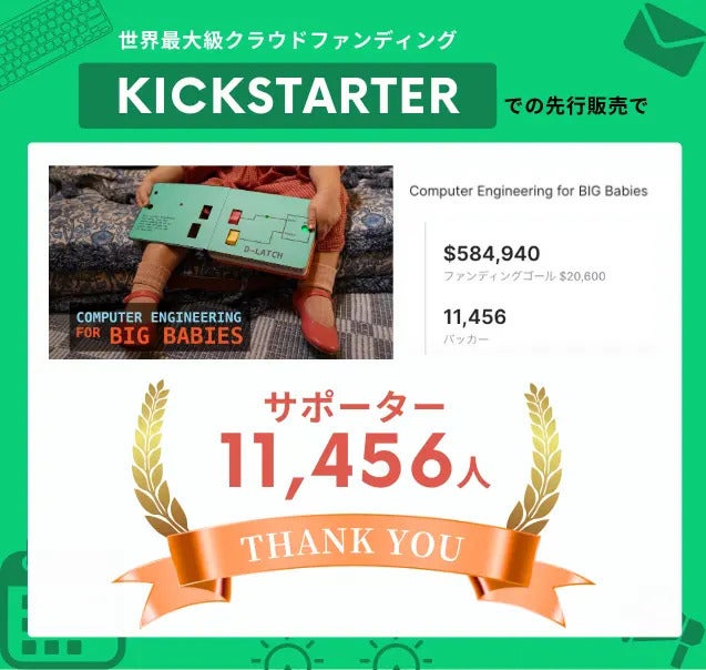 2024/07/26 12:00皆さんこんちは!(株)モノツク工業です^^夏休み真っ盛り!暑い日が続いておりますがいかがお過ごしでしょうか?【子供が夢中!CAPの仕組みを直感的に学べる、米国発の新しい仕掛け絵本】https://camp-fire.jp/projects/view/759639?list=search_result_projects_popularをご覧いただきありがとうございます。COMPUTER ENGINEERING FOR BIG BABIESは、子供たちがコンピューターの中で起こっていることに親しみやすくなるよう工夫がたくさん詰まっています。子供たちが大人になるころにはプログラミングや自動化がさらに身近なものになっているでしょう。6つの回路は普段の生活の中で使用する様々な機械に組み込まれています。電子レンジ(タイマー設定、モード設定)洗濯機(水量設定、モード設定)エアコン(温度・風量の設定)テレビ(チャンネル選択、音量設定)等々説明を読んだだけでは理解するのが難しい場合も、実際に触ってみると、あ~なるほど!と家族みんなで楽しんでいただける知育絵本になっております!プロジェクト終了まで残りわずかです。まだの方はお早めにご確認ください!最後まで精一杯頑張りたいと思います^^ もっと見る