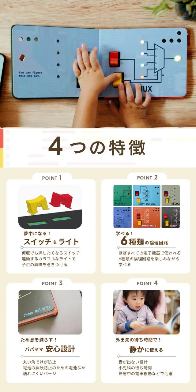 『Computer Engineering for Babies』シリーズは、スイッチで子どもが楽しみながらプログラミングの思考を養うことができる、知育しかけ絵本です。