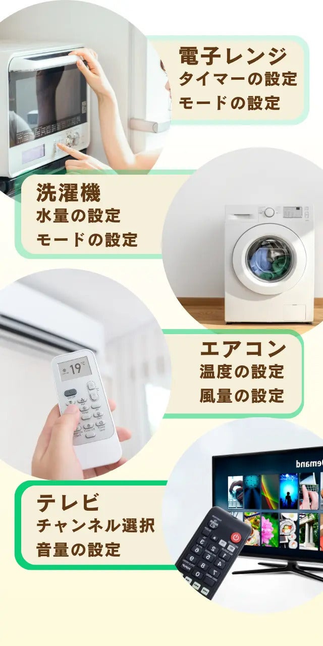 その他、この絵本で紹介した論理回路は冷蔵庫、洗濯機、電子レンジなど身の回りの多くの機器に使われています。