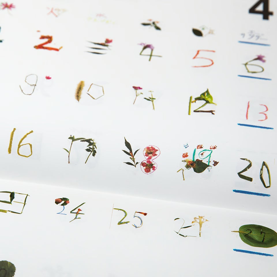 今年の制作は、高知の野で咲く花や植物、浜辺で拾ってきた素材などを多用し、自由にのびのびと好きな数字を作っています。