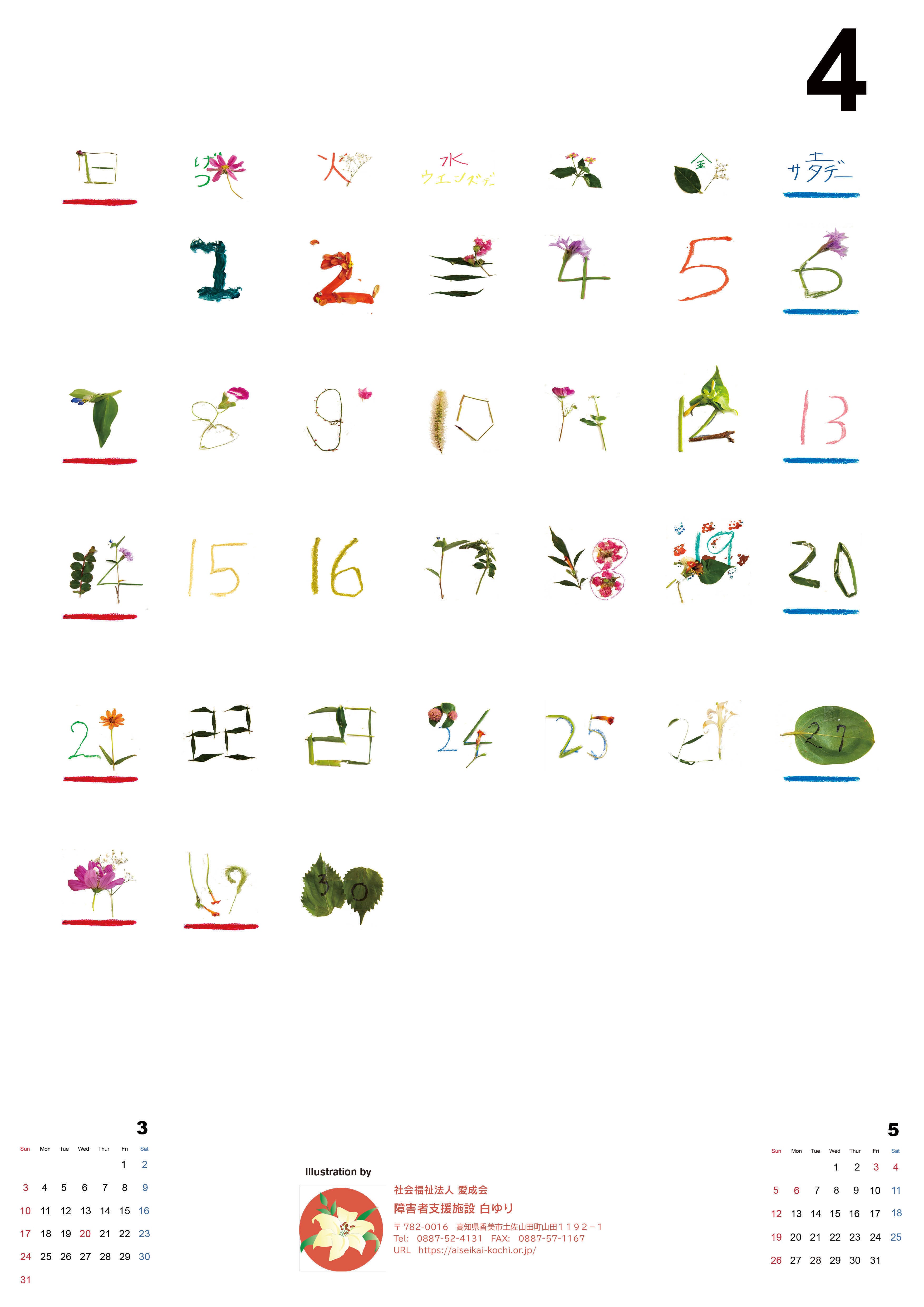 ● 風のカレンダー(障がいのある方々が描いた数字や絵でカレンダーを制作販売)