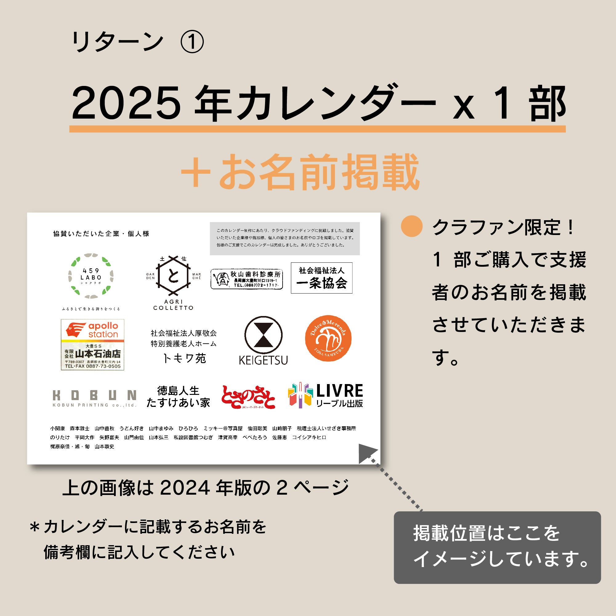 ● カレンダーのページ内にお名前を掲載させていただきます。