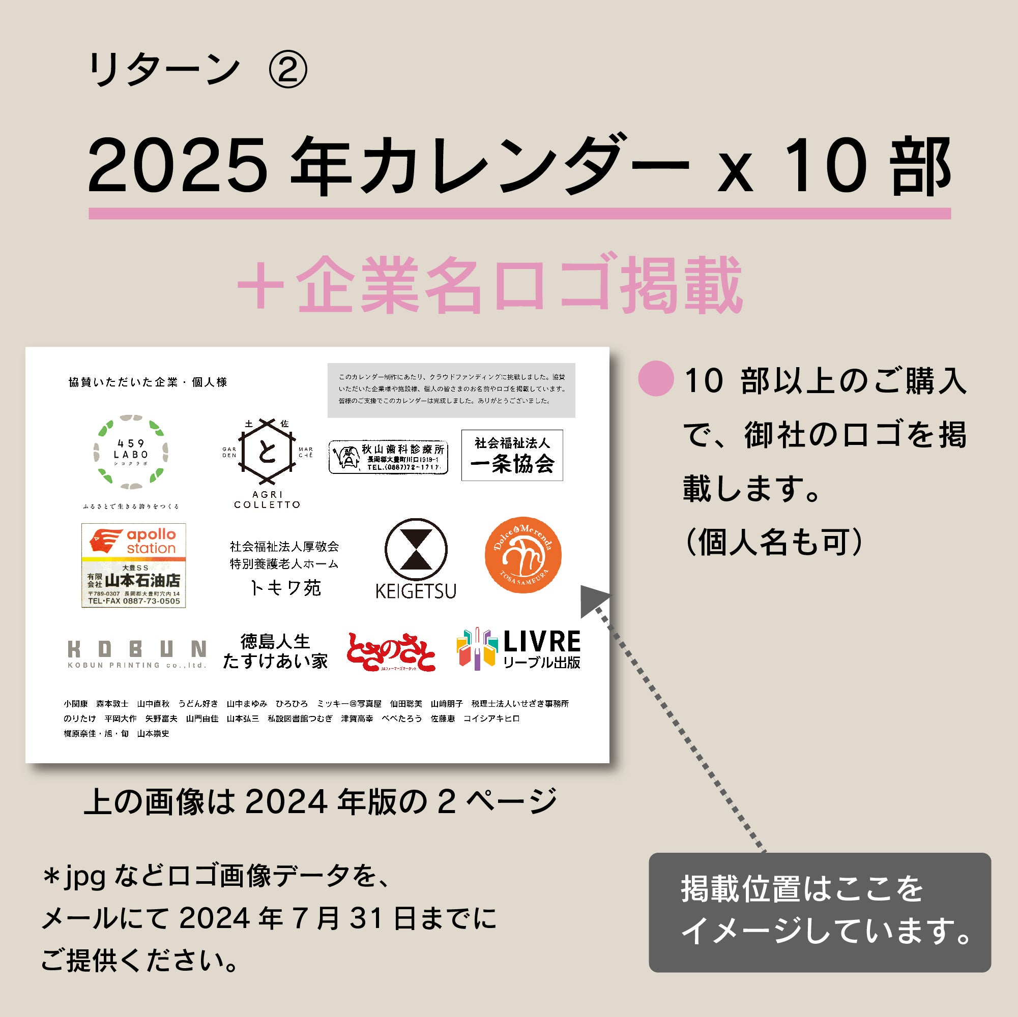 ■ リターン② 「風のカレンダー2025」を10部以上ご購入 企業協賛ーロゴ掲載 ¥16,500