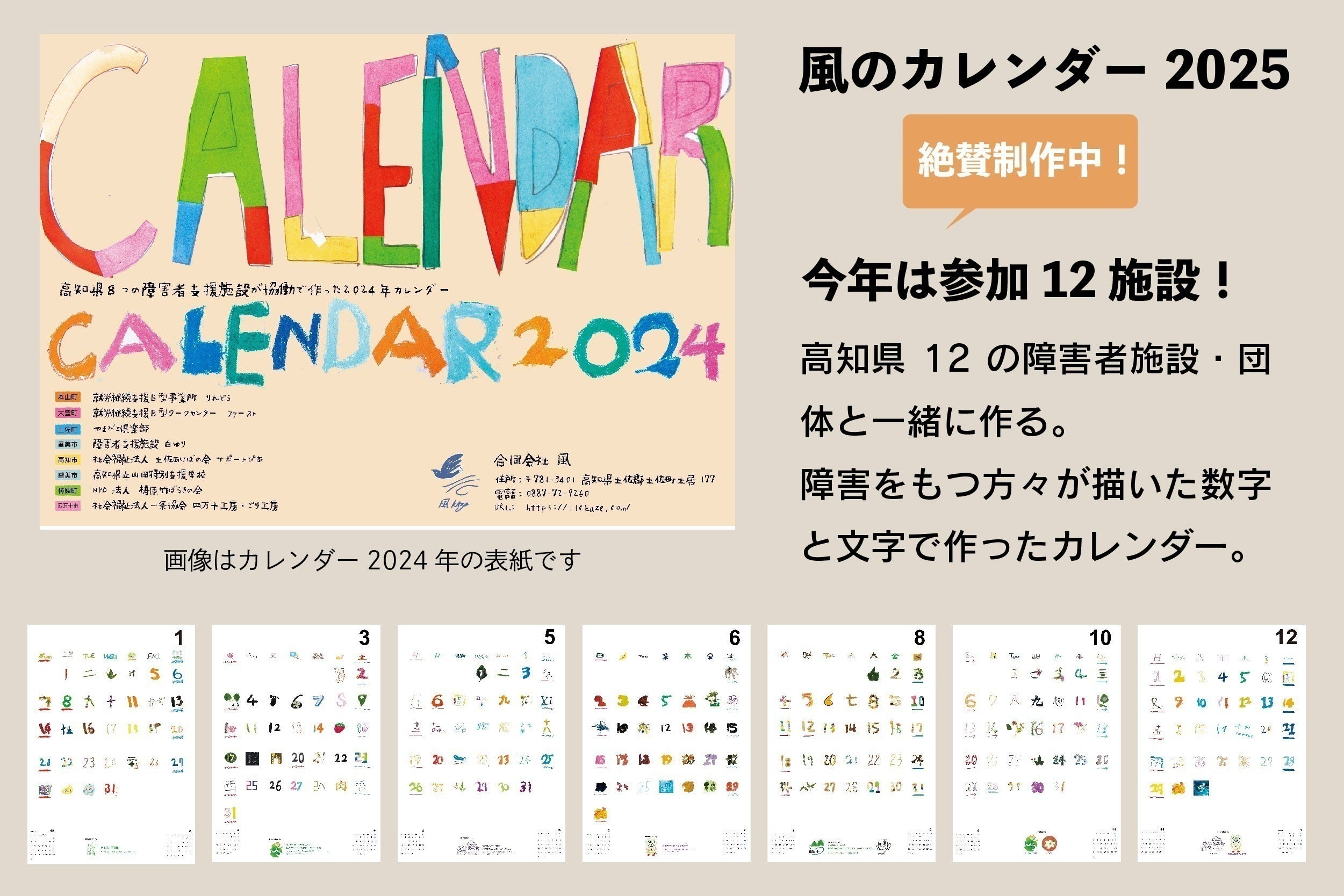 「風のカレンダー」は高知県の障害者施設とともに協働し、各々が自由に描いた数字や文字などを使って、一冊のカレンダーを作り販売するという取り組みで、今回で5年目になります。