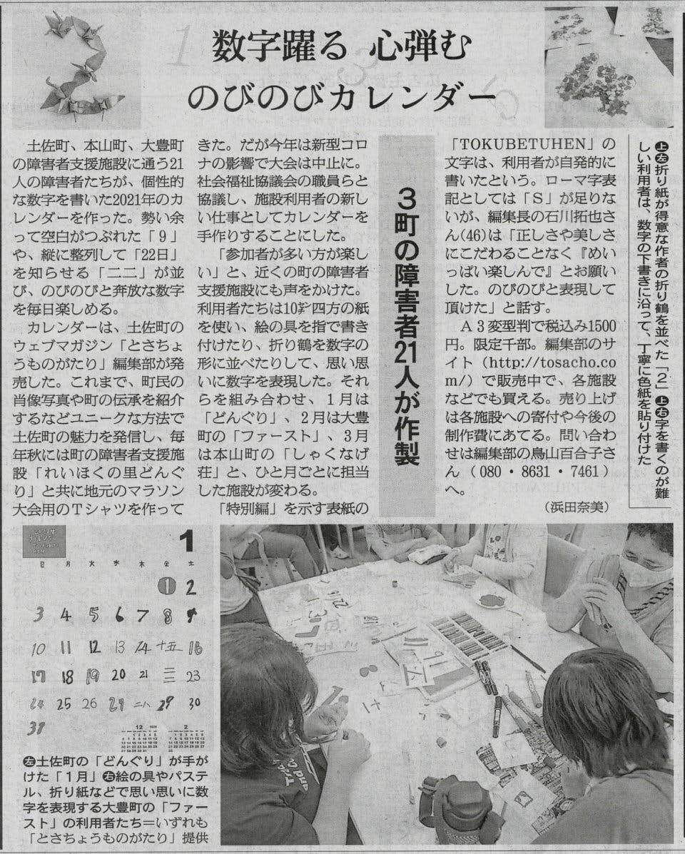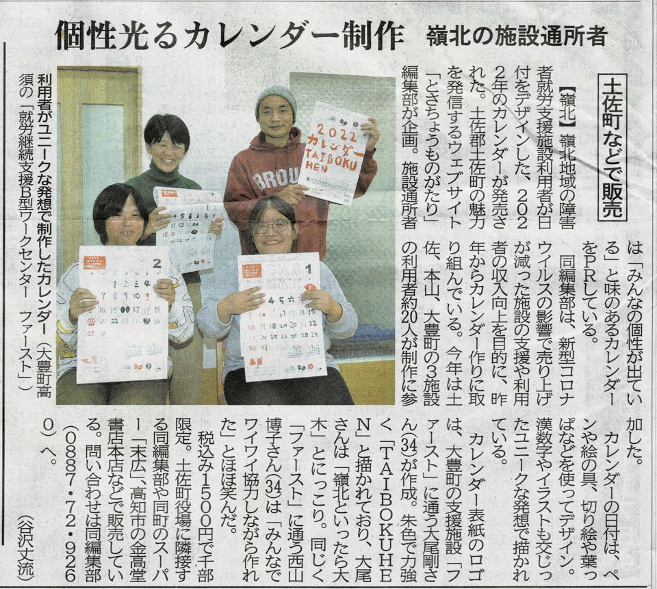 ”障害者の皆さんの楽しい表現活動がお金を生み、やりがいになり、社会とつながっていく。このカレンダーづくりは、「とさちょうものがたり」が続けている素敵なものづくりの仕組みです。高知新聞も意義を感じ、これまで何度も取材して紹介してきました。CFを通じて、より多くの方に触れてほしいと思います。”