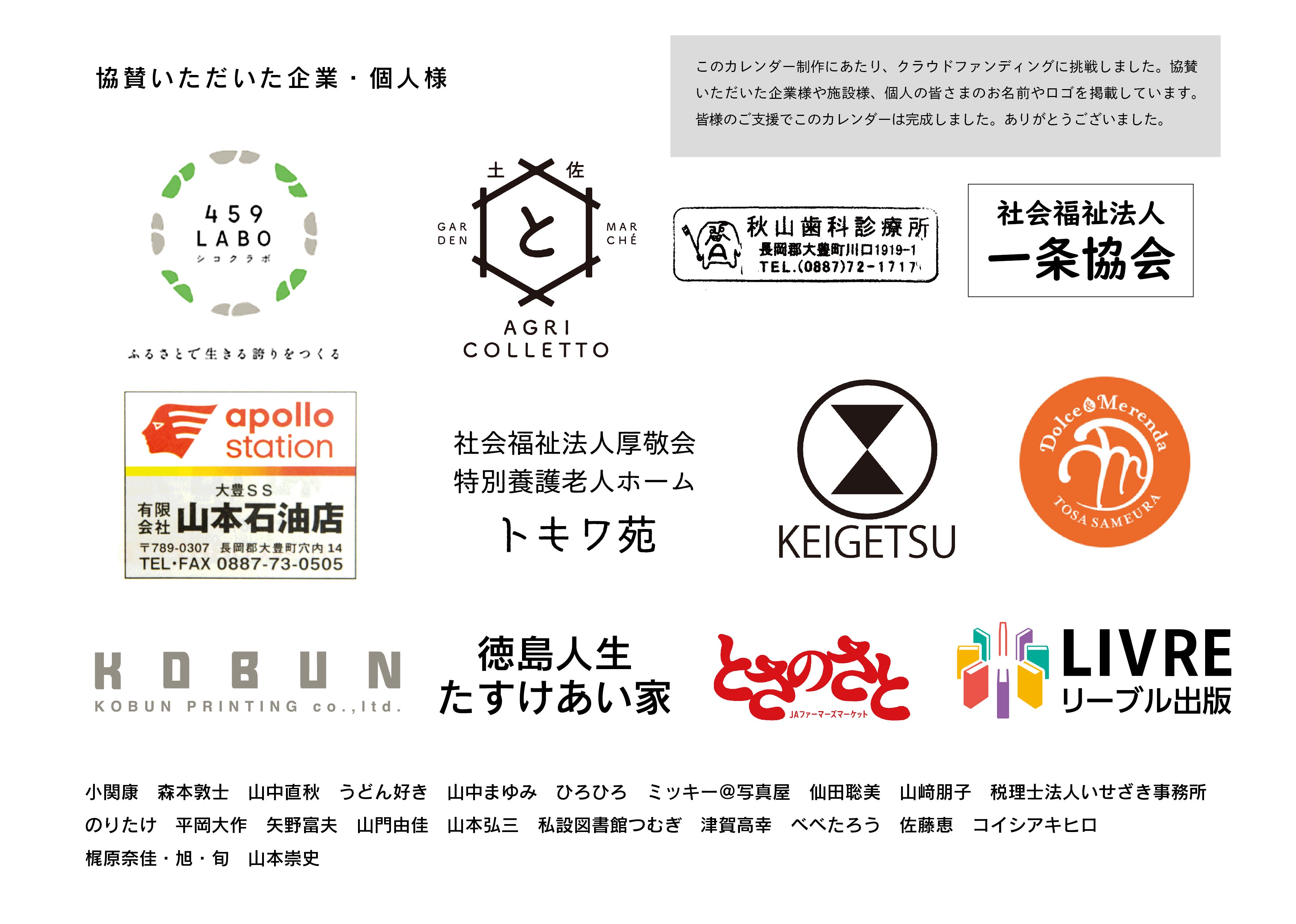 ● カレンダーのページ内にお名前を掲載させていただきます。