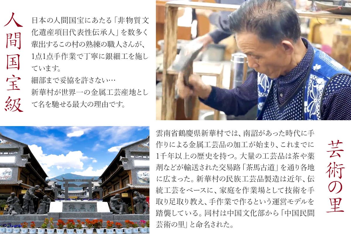 『世界一の金属工芸産地』中国銀器第一村の名工が作る純銀装飾のマグボトルをご紹介いたします。