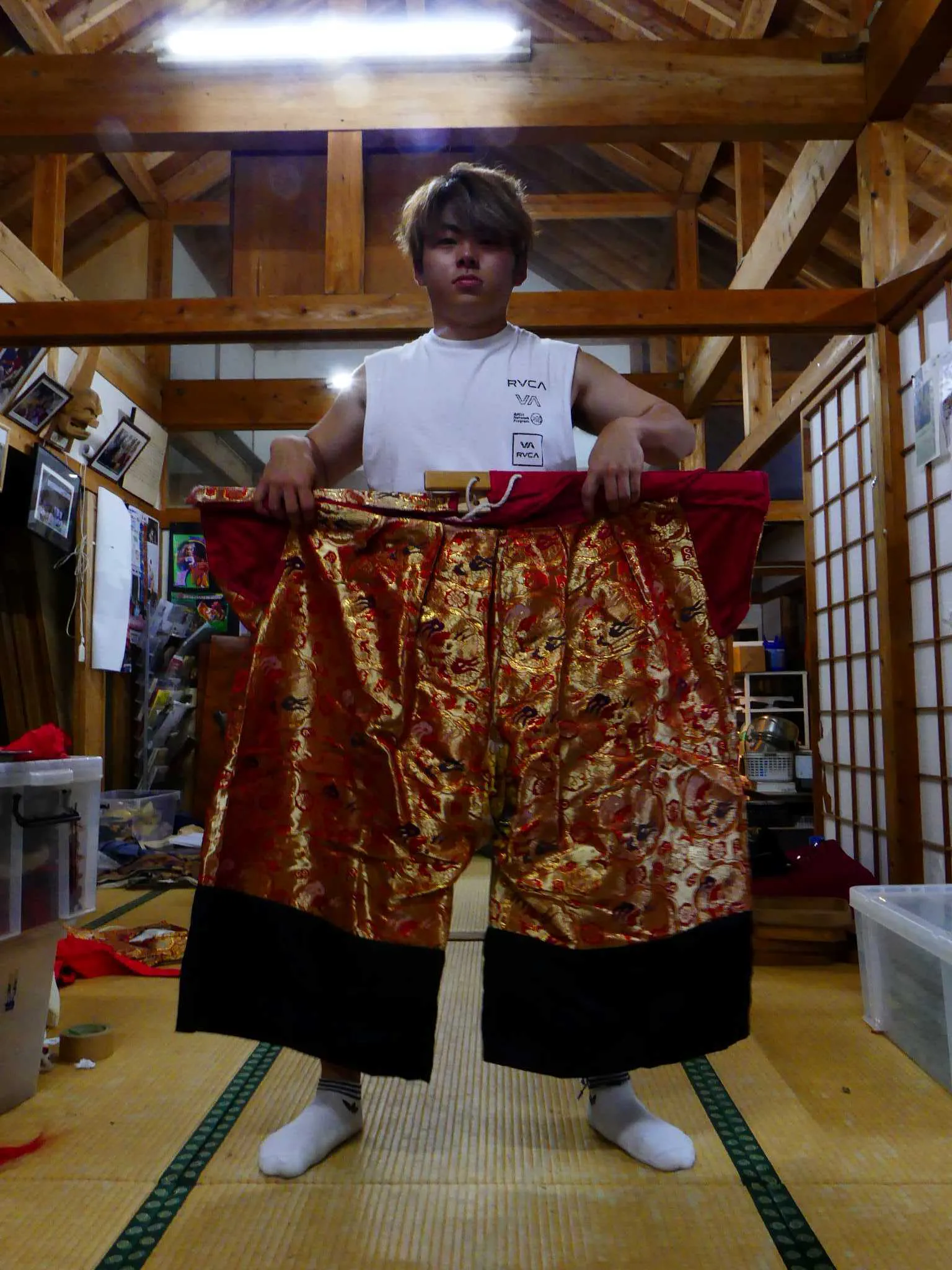 2024/10/01 00:00クラウドファンディングにご支援して頂きました、皆様にご報告です。この度、衣装を補正させて頂きました!!いつも激しい舞をしているため衣装のほころびが気になっていました。中江岩戸神楽で使用している衣装はどれも古いものばかりで、もっとも多いものが、平成二年の県立劇場公演の際から使用している衣装で30年ほど前のものになります。これからも、先輩たちが使用してきた衣装を大事につかっていきたいと思います。 もっと見る神楽フェスティバルに向けて練習頑張ってます