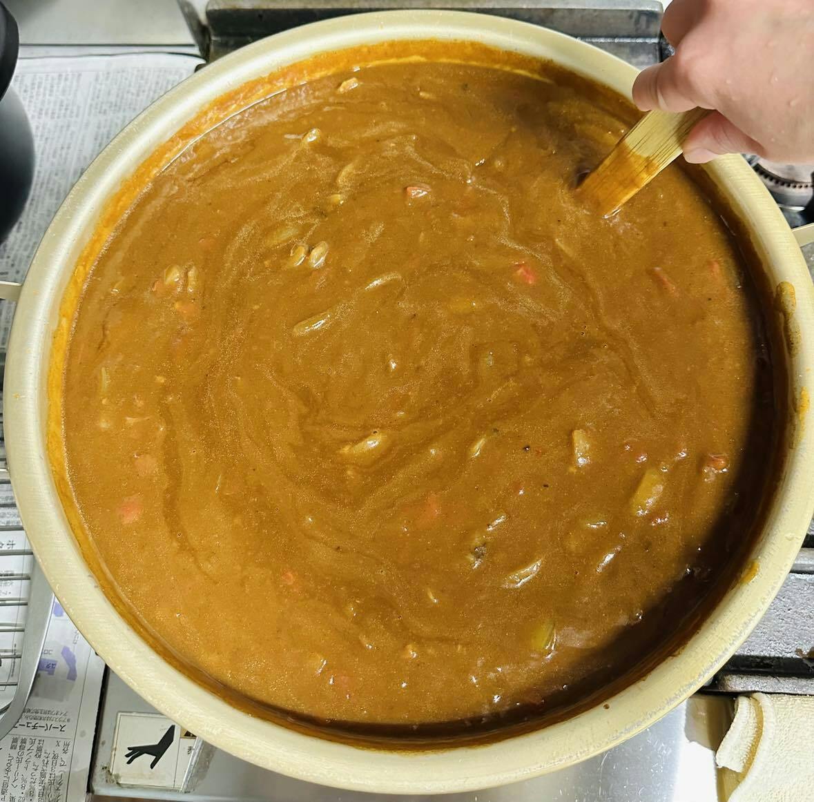 レトルトへの密封加工は専門の工場で行いますが、中身のカレーは私の手づくりです。