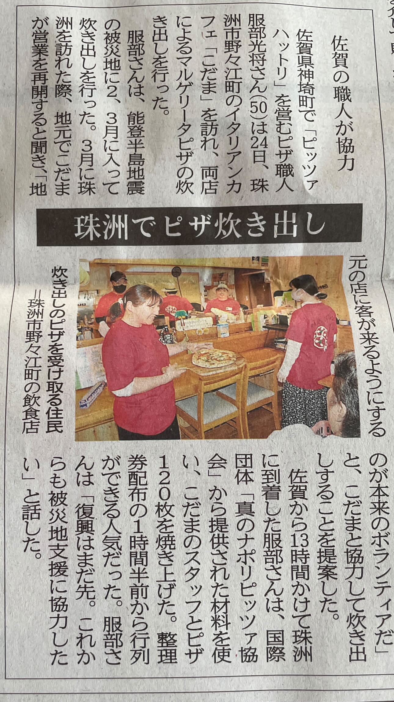 4月には珠洲市にて被災された現地のピザ店と共にピザの炊き出しを実施しました。