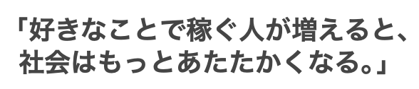 そういう大人が増えると、子どもたちも未来に希望を持てます。お金の不安で心が冷たくなる社会より、“自分の好き”で温かい関係が広がる社会にしたい。