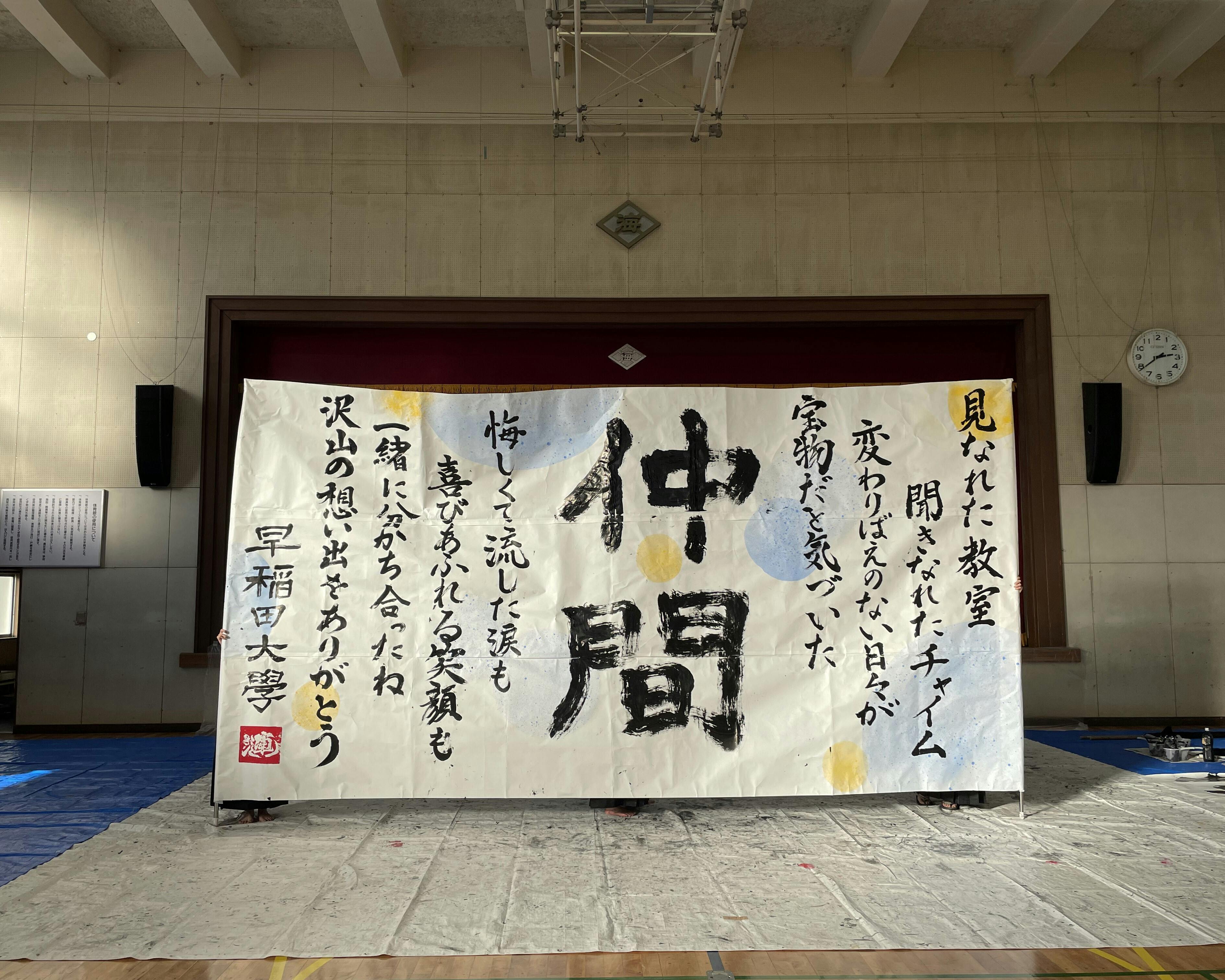 私たちは、2019年に当時の一年生のみで立ち上げた早稲田大学唯一の公認書道パフォーマンスサークルです。「漣」というサークル名には、「穏やかな波が広がるように周りにいい影響を与えたい」という思いが込められています。