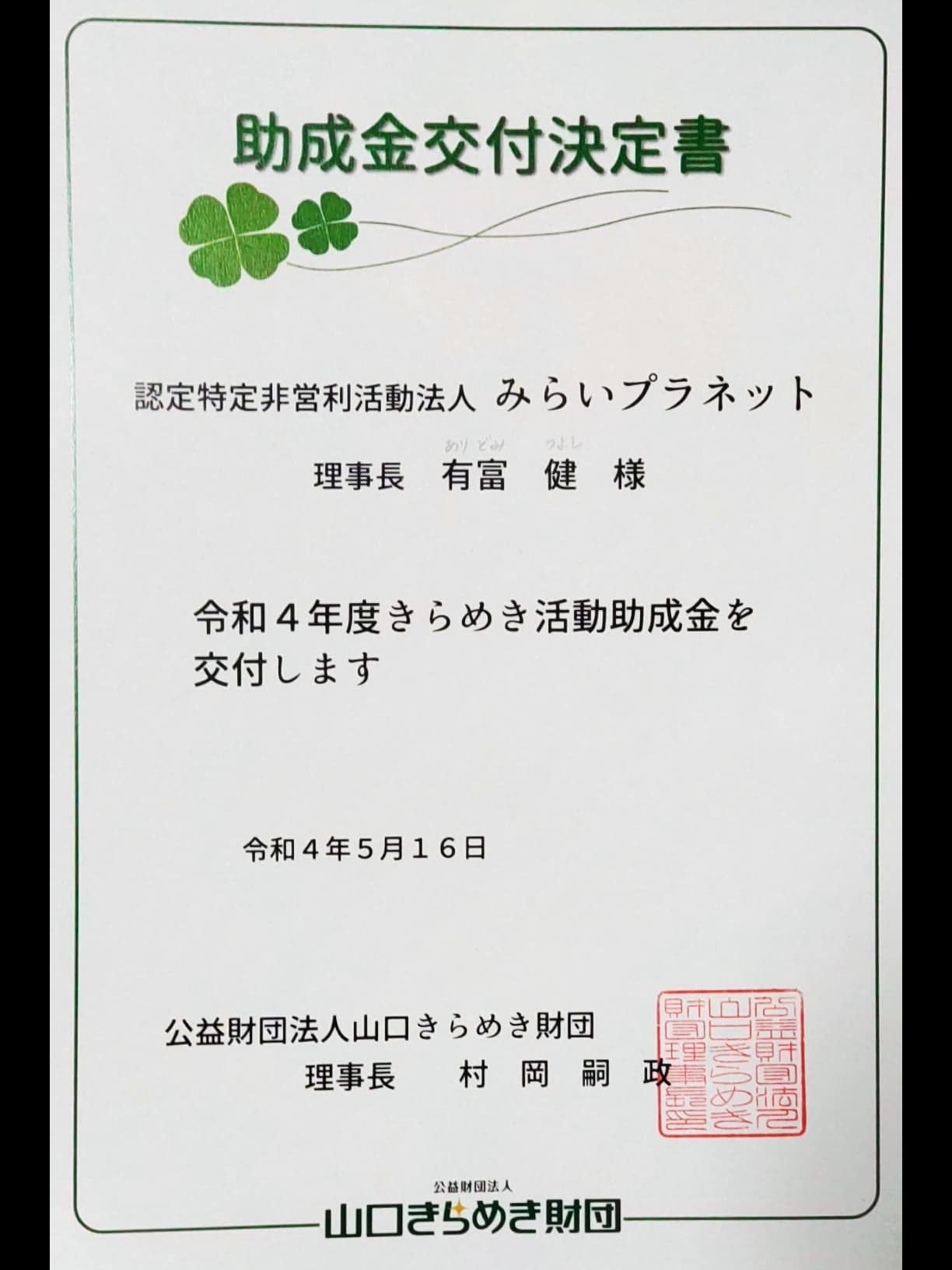 認定特定非営利活動法人みらいプラネットでは設立10年の節目を経て、2023年からこれまでの難病患者に対する支援を主体とした活動から、「障害」、「人権」、「教育」、「福祉」の4つのテーマを複合的に取り扱い、「笑顔あふれる共生社会の実現」に向けた活動を継続している団体で、主に山口県内を中心に活動して参りました。