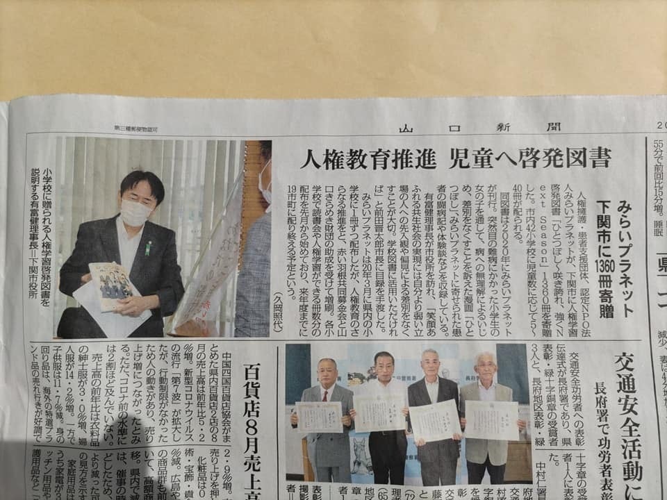 そのように多くの方に背中を押していただきながら、なんとか現状の資金不足の問題にも「負けるものか」という気概で、必ず日本国内全ての都道府県に対して弊団体の代表者並びに担当者が複数名で出向き、手交という形をとることで、多くの想いがつまった人権学習啓発図書「ひとつぼし」の手交を実現し続けて参りたい所存です。