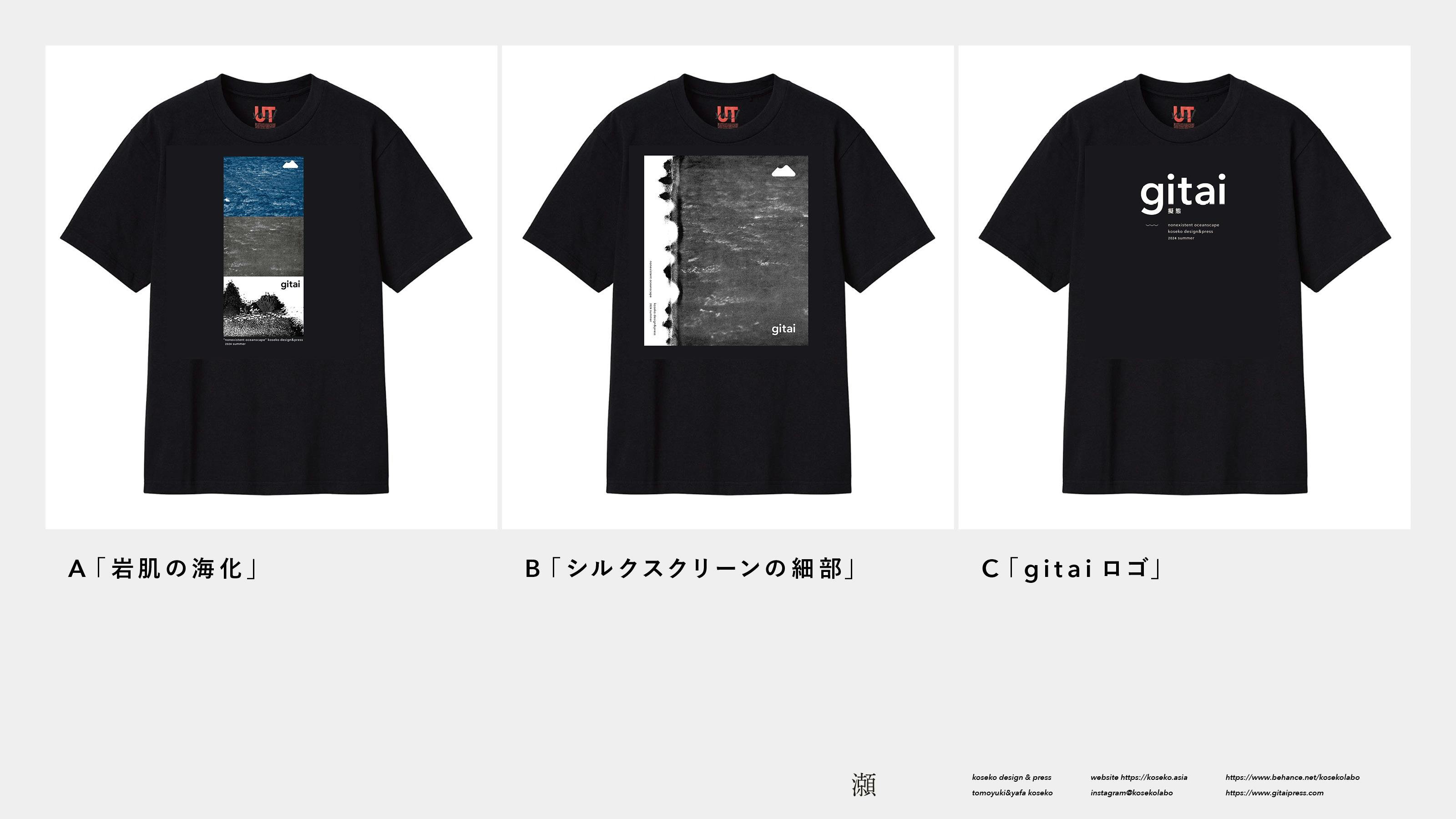 今回のアートワークやgitaiロゴをあしらったTシャツです。自分がYシャツ派だったのもあって、これまであまりTシャツをリターンにすることはなかったのですが、最近はTシャツを楽しめるようになってきたので、満を持して?Tシャツを制作します。3種類のバリエーションから選べます。AとBは今回のクラファンのみでのデザインです。プリントはUTme!を使っています。