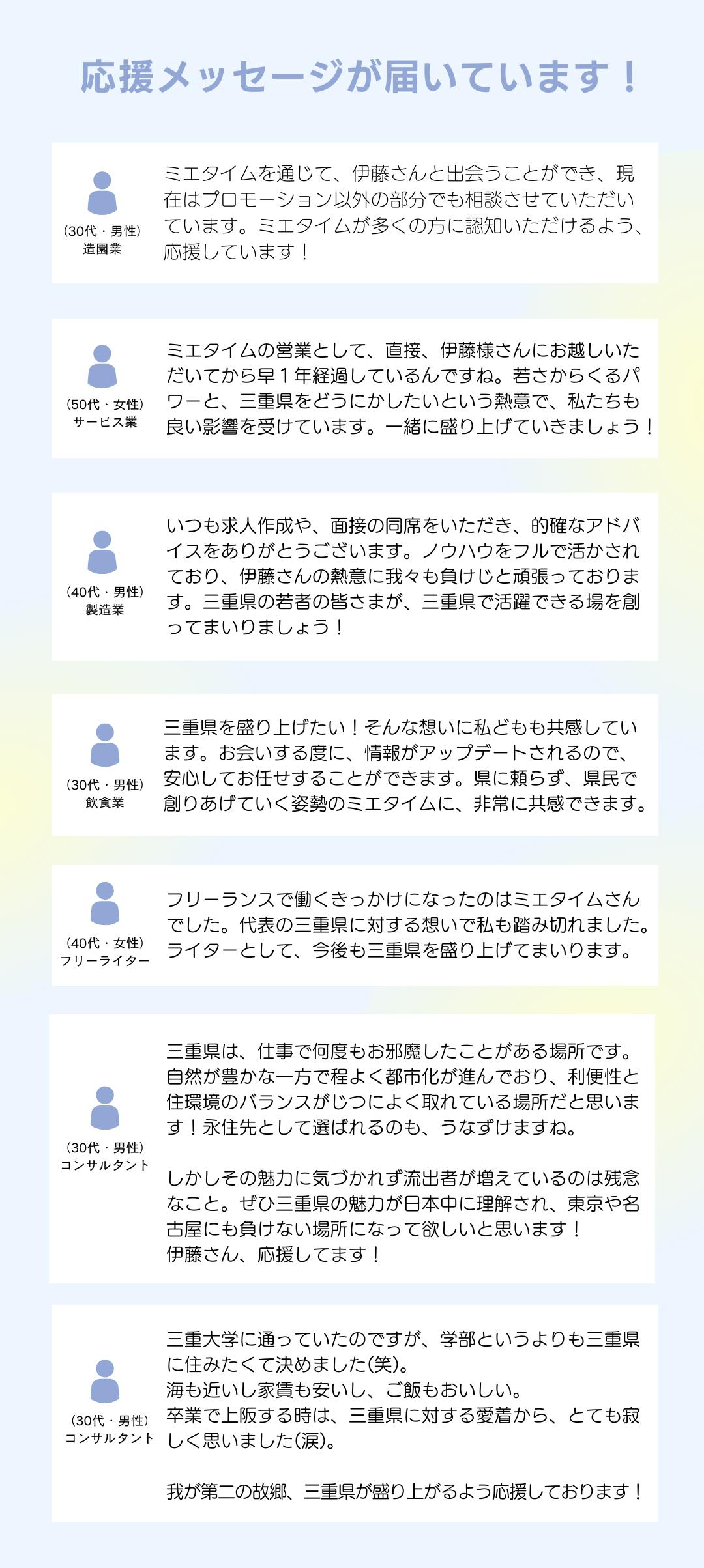 また、この本が、三重県で働こう、三重県でがんばろうと考える若者たちに、その一歩を踏み出す勇気を与えることができたらうれしいです。