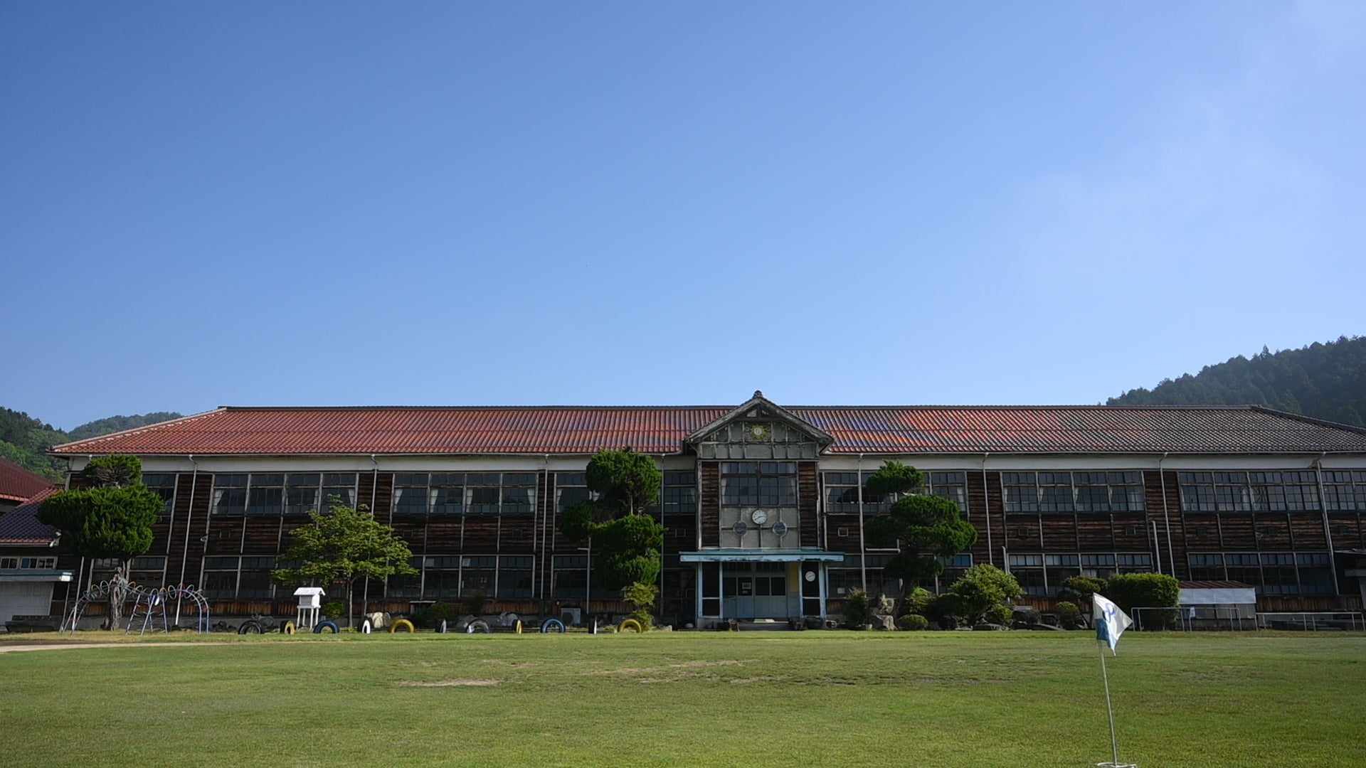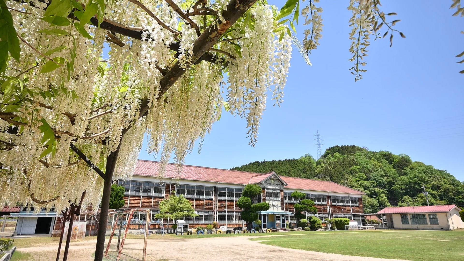 郷野小学校は平成31年に閉校しましたが、その美しい木造校舎が特徴的な学校で、閉校前からドラマやMVの撮影にも使用され、閉校後も解体を惜しむ地域の方のご尽力でその姿が保存されています。