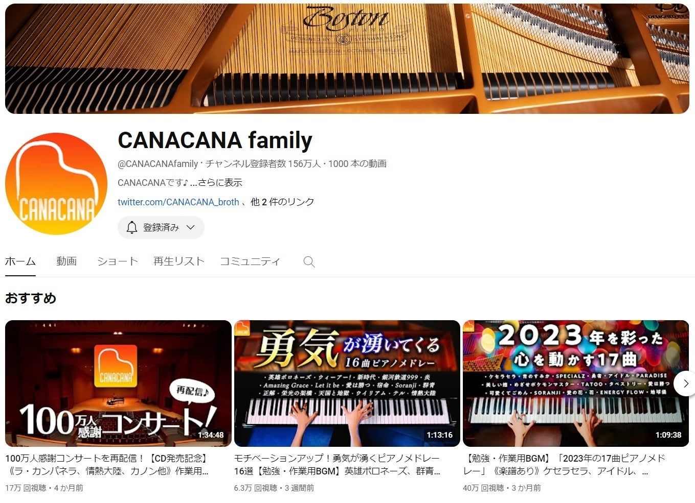2024年5⽉現在、チャンネル登録者数約156万⼈の「CANACANA family」でピアノ演奏動画を公開されていらっしゃいます。