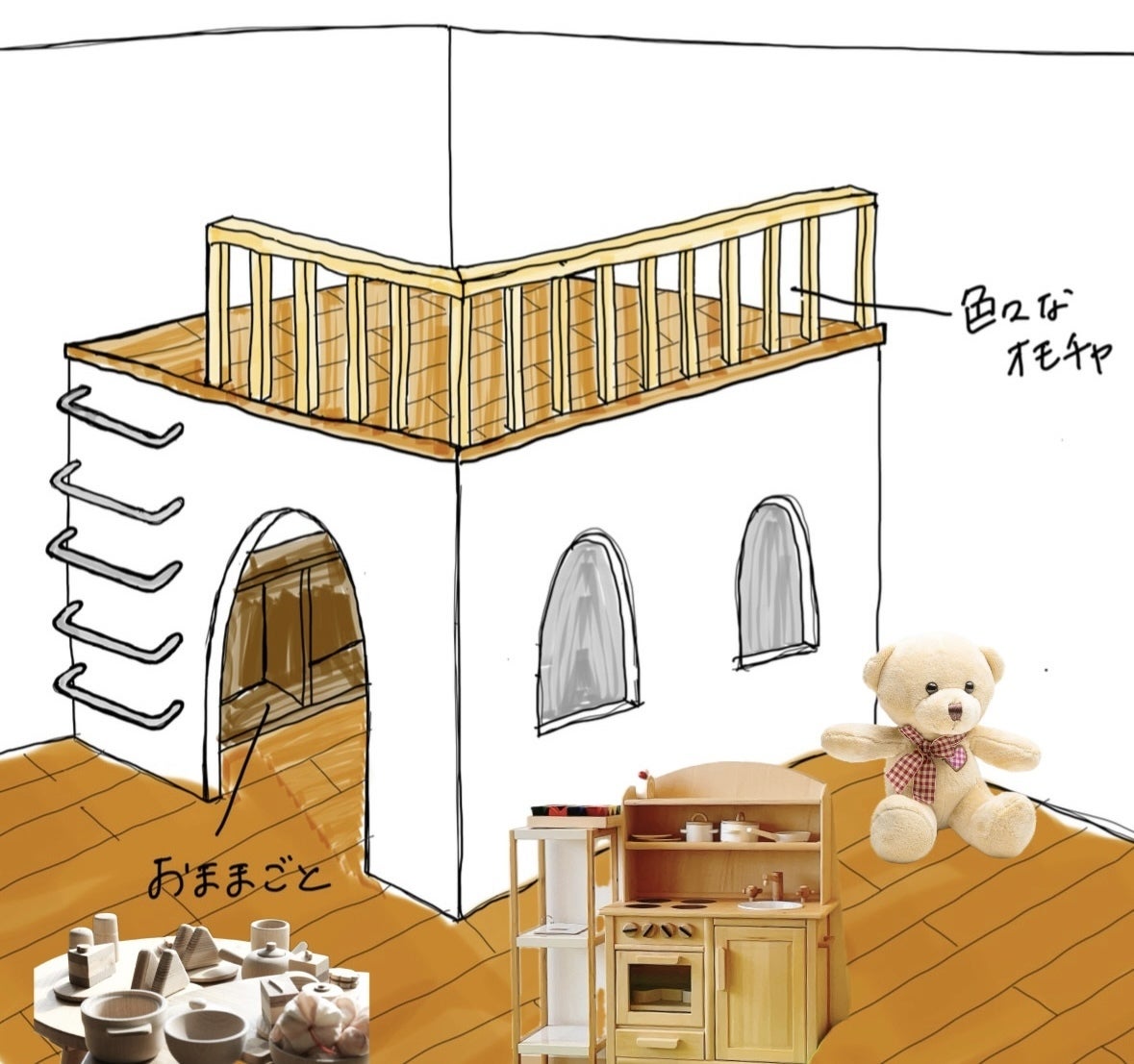 そこで、ただお洋服を販売するだけではなく、小さいながらもお子さまが遊べるスペースを併設し、ゆっくりお買い物を楽しめる場を作りたいと考えております。