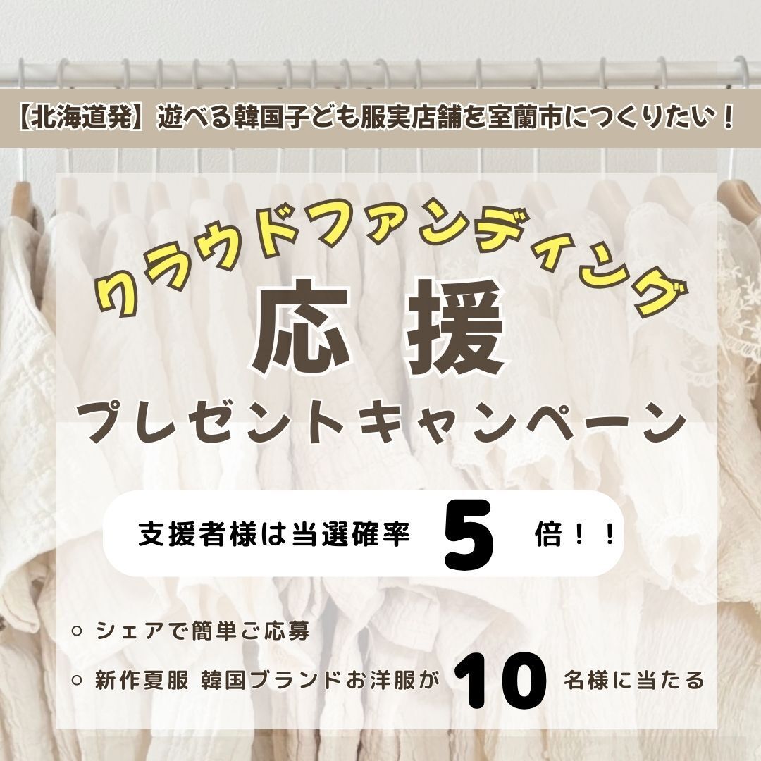 オープンして1年経ち、デザイン性・価格・品質のバランスが優れている韓国子ども服により魅了され、もっと身近に感じられる場所を作りたいと思いこの度、北海道・室蘭市に「遊べる韓国子ども服実店舗」をオープンすることを決意致しました。