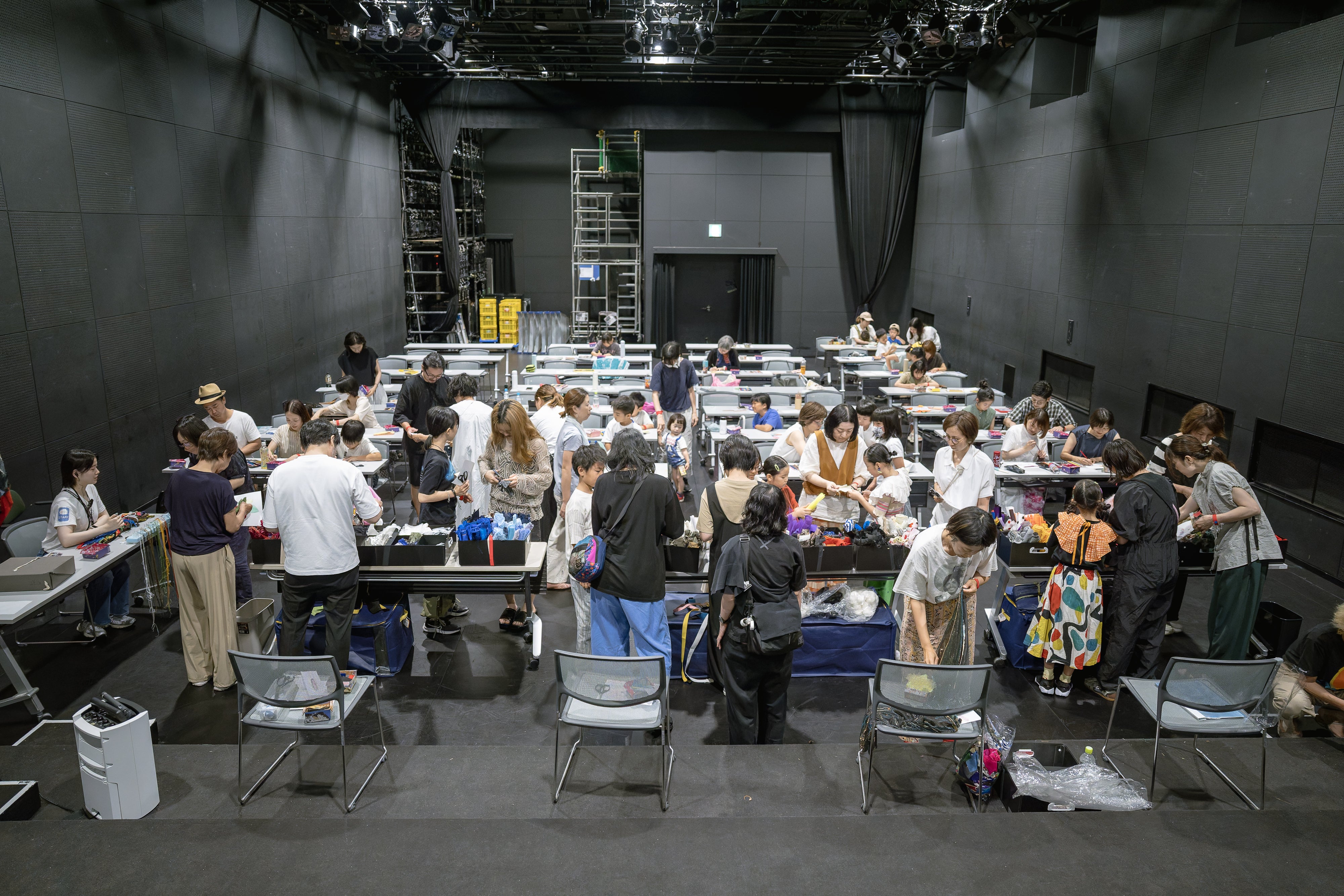 どんなブローチをつくるのかデッサンするところからスタートし、会場に設置された生地や衣装の断片等の素材を選んで、形にしていきます。