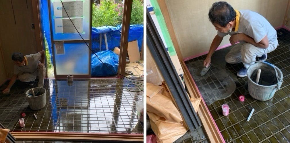 タイルはタイル職人のおじさんが一人で張ってくれました。