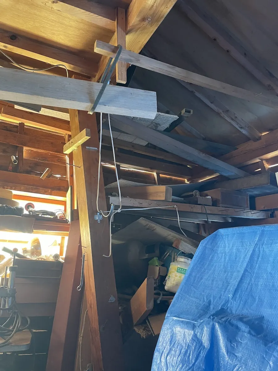 しかし現在、前述の通り今の作業場は建物が傾いて全く使える状態ではなく、倒壊の危険もあるのでここで作業をするのは不可能です。大工の作業場は、柱や梁など家の部材となる木材を加工するために不可欠な場所で、本格的に仕事を行うためにはどうしても必要なものです。
