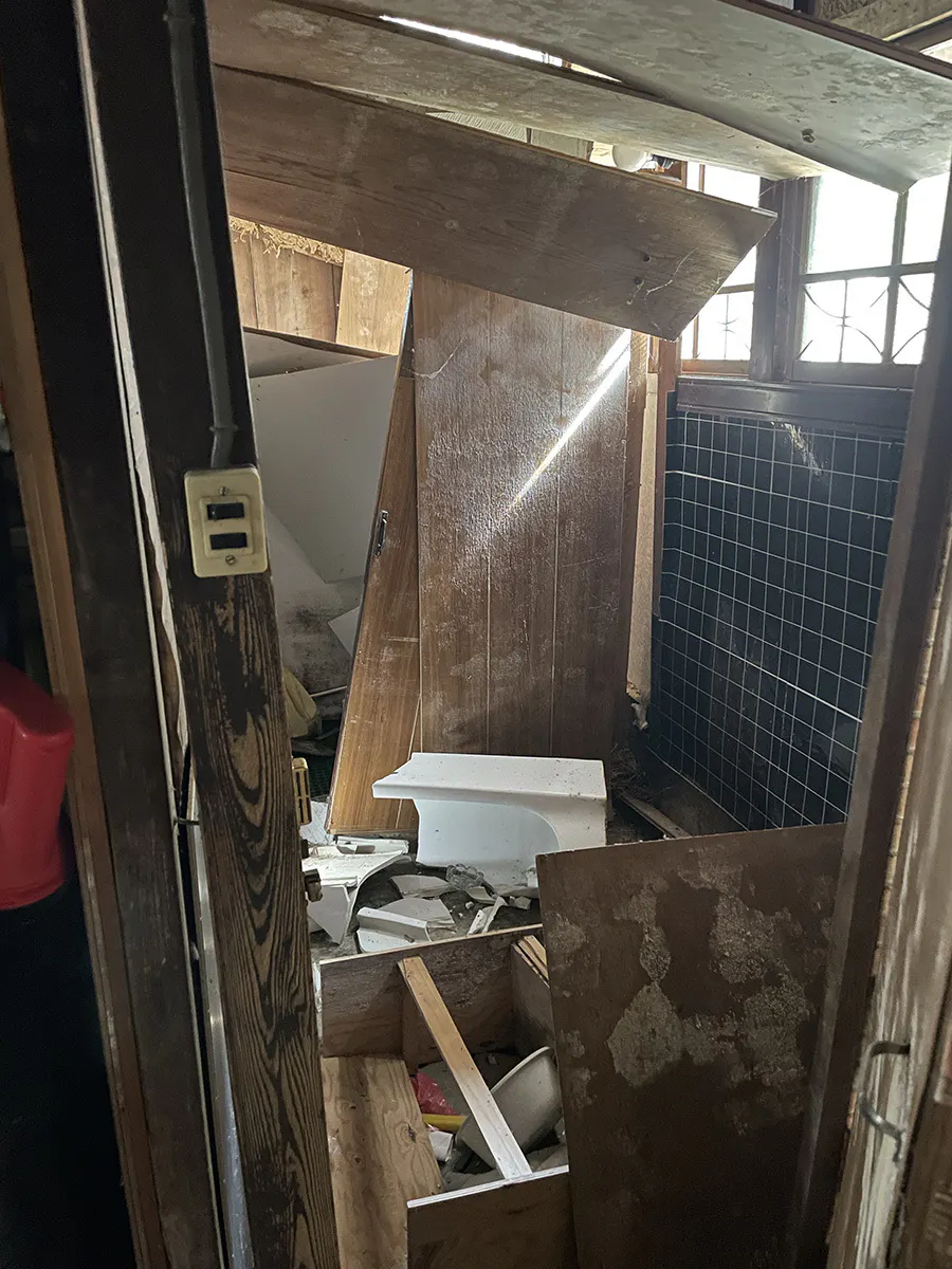 父の自宅と作業場は市街地から少し離れた山あいの集落にあるのですが、地震のひどい揺れで自宅も作業場も大きく損壊し、自宅は全く住める状態ではなくなりました。また作業場も大きく傾いて室内の工作機械も倒れて使えなくなり、道具や材料も散乱してどこから手をつけていいのかわからない状態で、呆然として途方に暮れてしまいました。