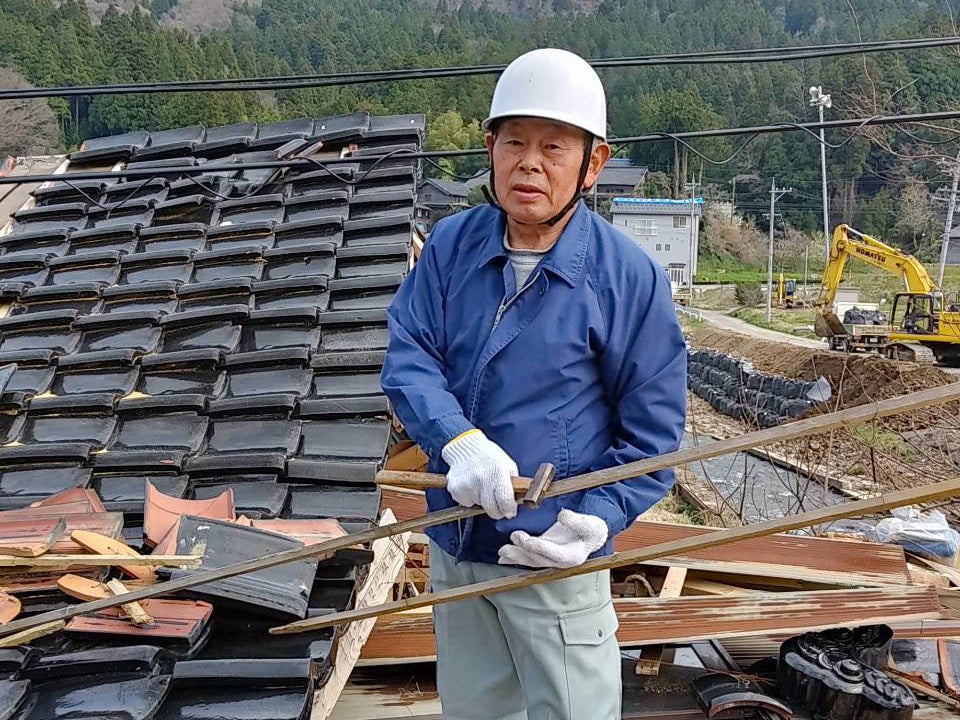 そんな厳しい状況でしたが、地震発生直後から父は大工として市内各所の傷んだ家屋の応急修理に奔走してきました。なんとか取り出せた道具を使い、あちこちの家の屋根に登って雨漏りを防ぎ、余震が来ても危険がないように補強工事をし…と、余震も多い中休みなく作業を続けてきました。息子の私は輪島塗の職人なのですが、ろくに休みも取らない父を少しでも助けたいと思い、仕事の合間を縫っては屋根に登って父の仕事を手伝いました。