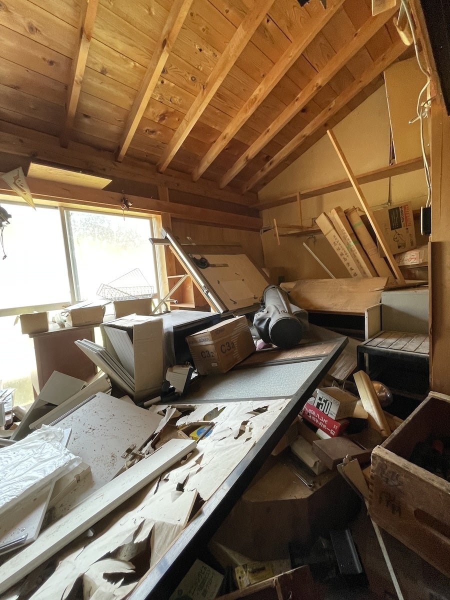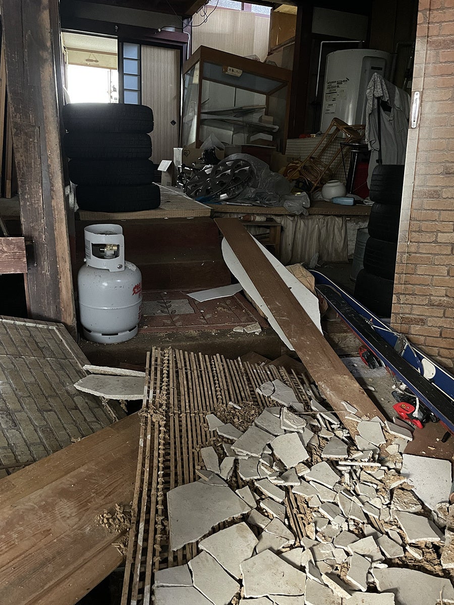 父の自宅と作業場は市街地から少し離れた山あいの集落にあるのですが、地震のひどい揺れで自宅も作業場も大きく損壊し、自宅は全く住める状態ではなくなりました。また作業場も大きく傾いて室内の工作機械も倒れて使えなくなり、道具や材料も散乱してどこから手をつけていいのかわからない状態で、呆然として途方に暮れてしまいました。