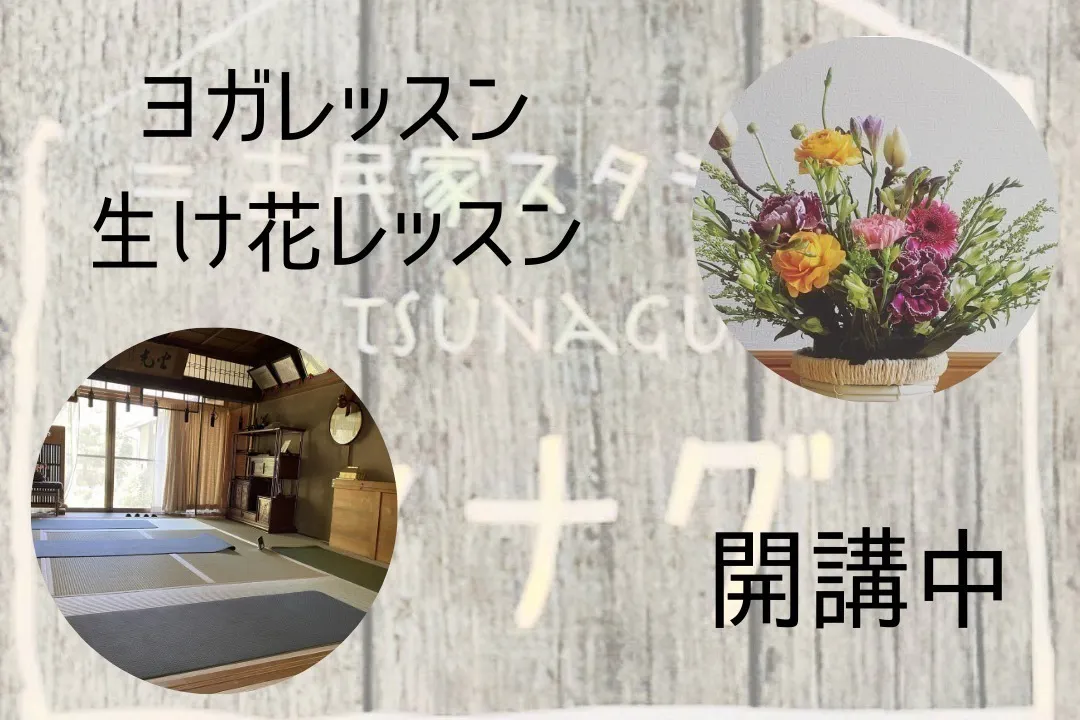 滋賀県大津市にある築93年の古民家でヨガと生け花をやっています。「古民家スタジオ ツナグ」です。よろしくお願いいたします。