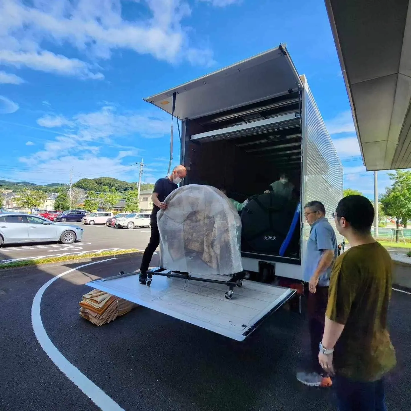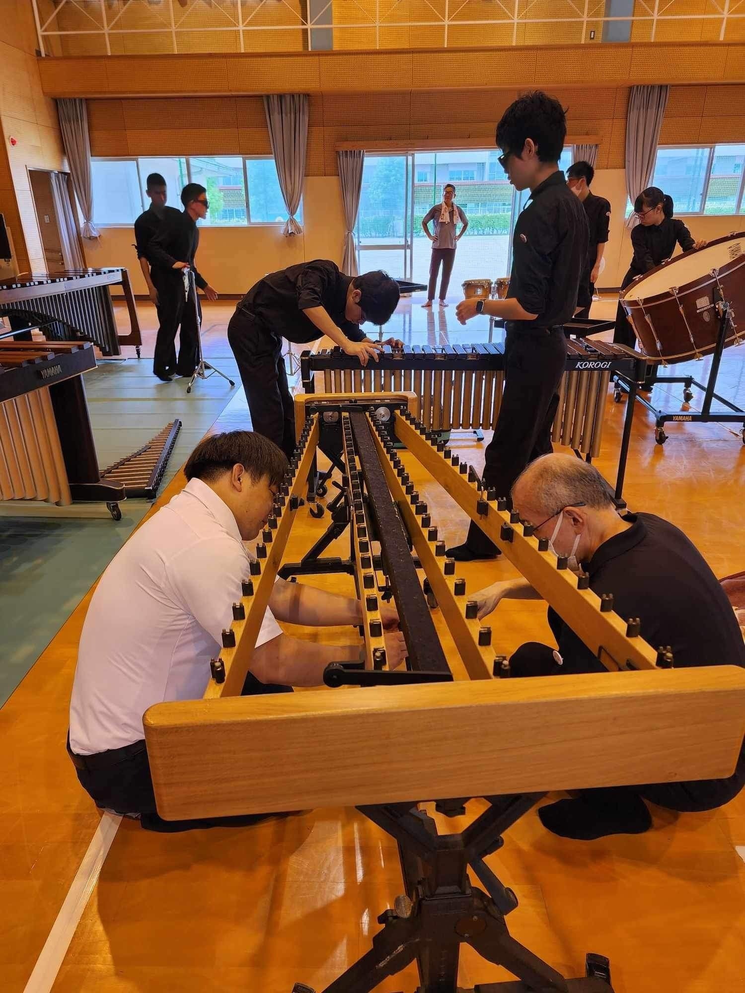 鹿児島県立鹿児島盲学校の体育館をお借りして、練習しました。楽器をトラックで運び込み、組み立て、練習して、そしてまたトラックに積み込む。鹿児島盲学校の先生方、取材同行されていた皆様に汗だくになって手伝っていただいたおかげで、部員は練習を存分に行う事ができました。
