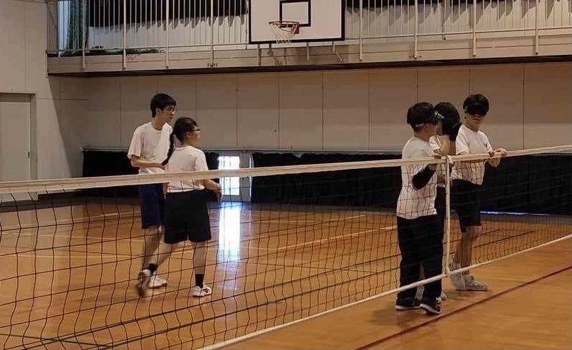 3名の部員は、フロアーバレーボールの練習を頑張っていました。