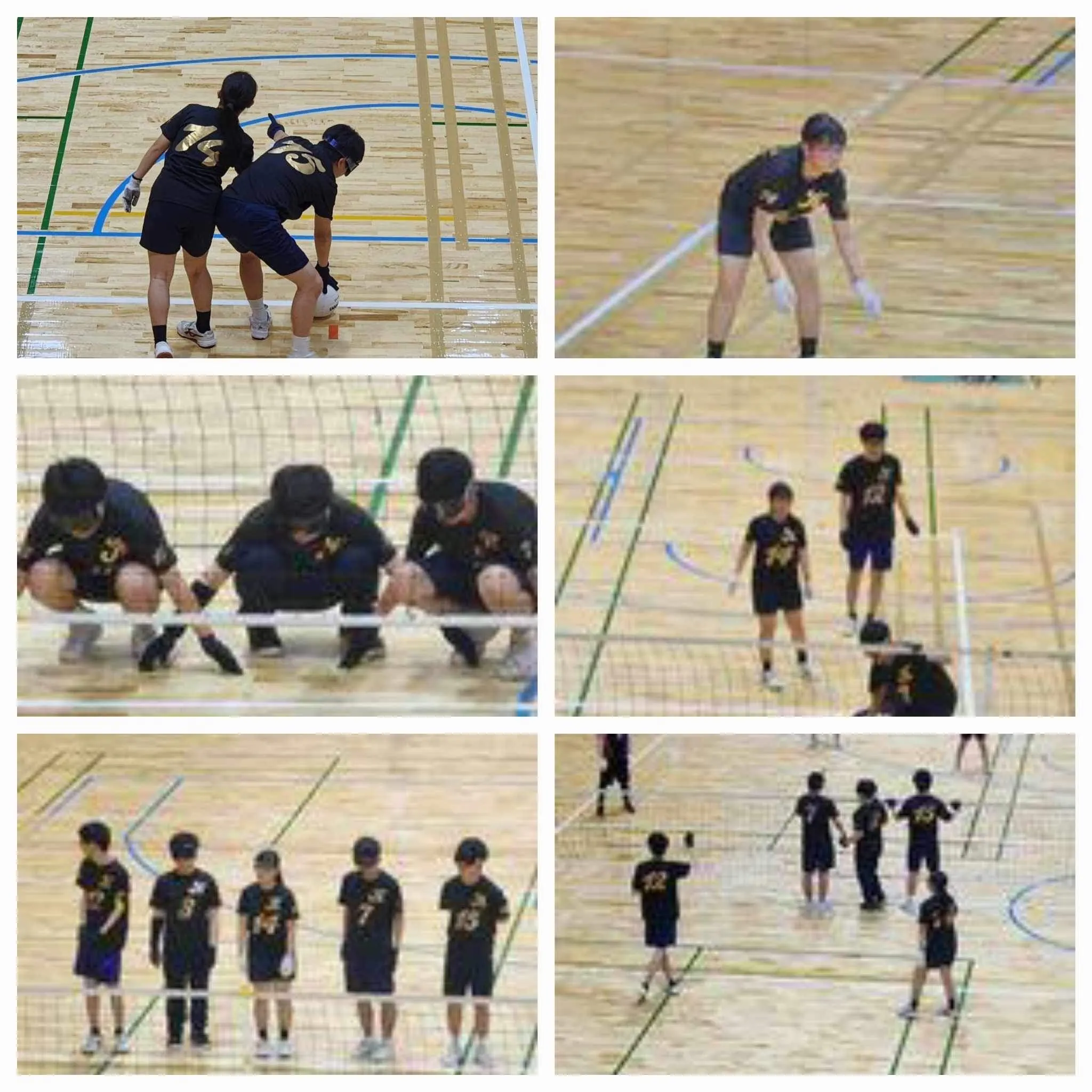 フロアーバレーボールは、チームワークが重要です。前衛は全盲。必ずアイマスクをします。後衛は弱視。後衛が前衛に「右右右!」「オープン!」などと声をかけたり、サーブの時には、手を取ってサーブの方向を示したり、別の選手は手を叩いて音でサーブの方向を伝えたりします。ボールは床を転がります。強いチームは、すごいスピードのボールです。