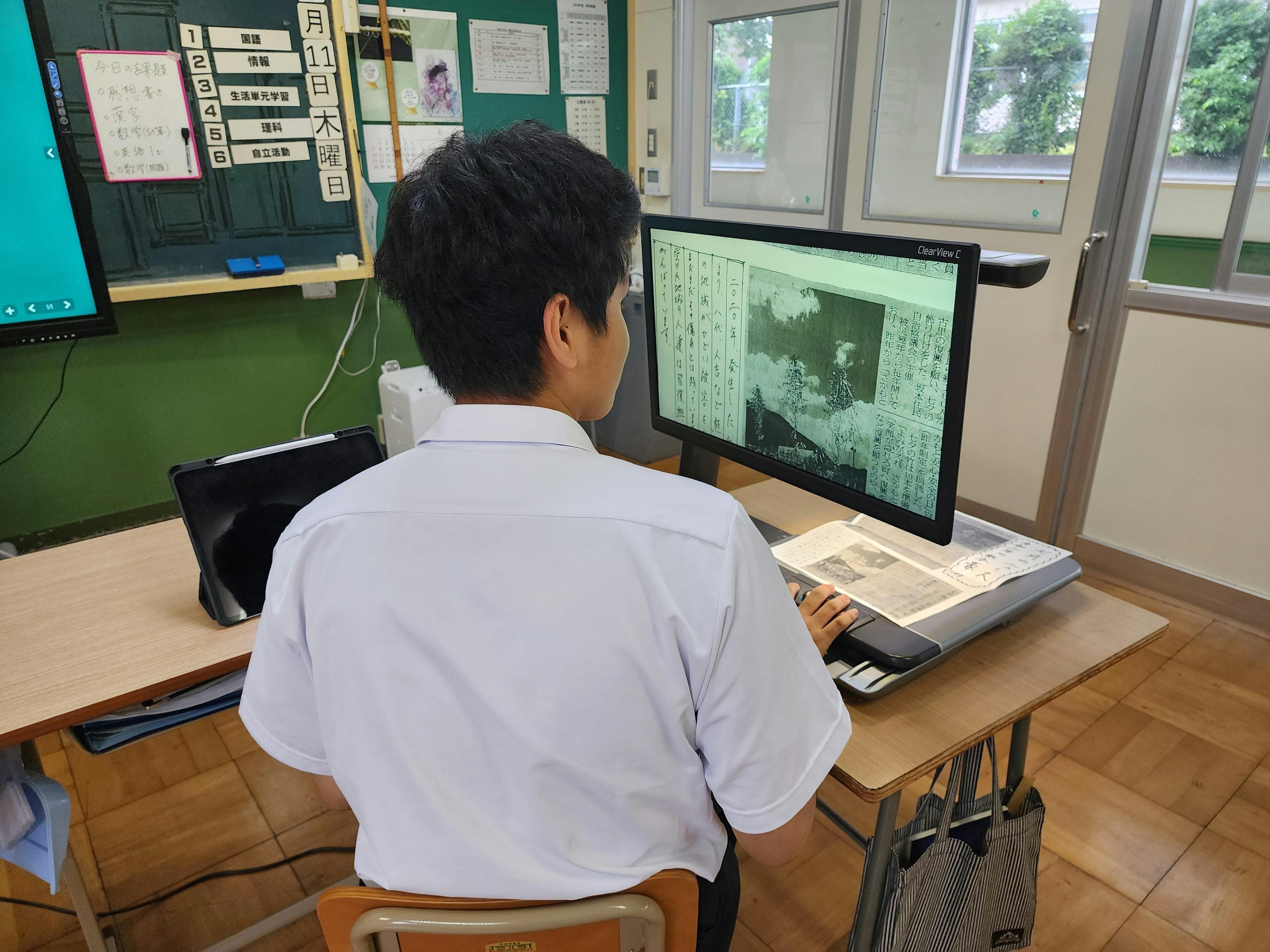 今日の授業では、多くの方が犠牲となった令和2年7月球磨川流域豪雨災害追悼記事を使い、災害について学習していました。