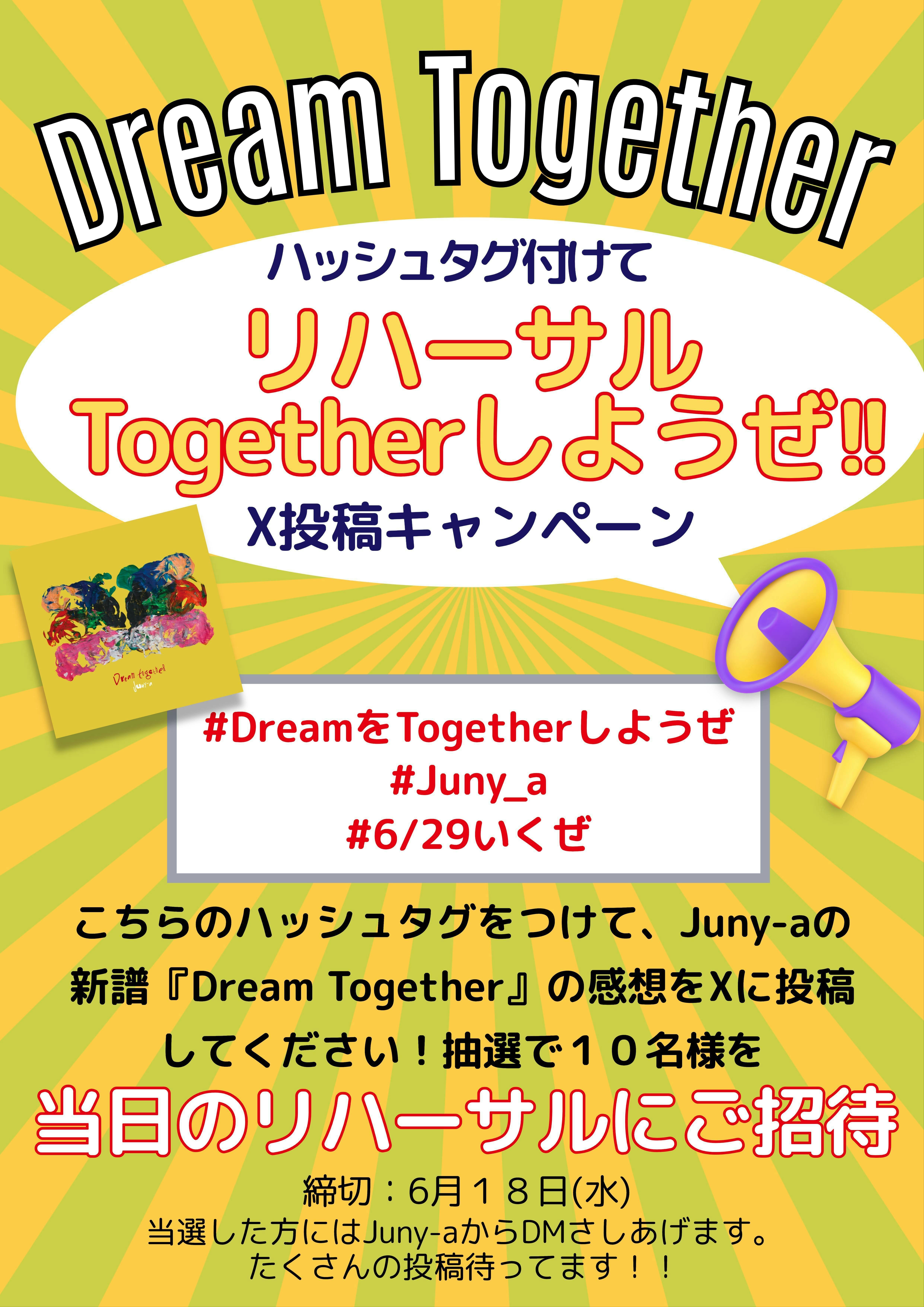 1000人に届け!Juny-aの音楽!初のホール公演パンパンに向けてほぼ毎日投稿day237[東京FMホールカウントダウン!あと14日!]Dream Together聴いてただけましたでしょうか?まだの方はぜひこちらから聴いてくださいませ↓https://linkco.re/mY4Vn4dfそして!ハッシュタグキャンペーン開催中です!!ハッシュタグは↓ ↓ ↓#DreamをTogetherしようぜ#Juny_a#6/29いくぜ↑ ↑ ↑こちらをつけてXにDream Togetherの感想を投稿してください!抽選で10名の皆様を当日のリハーサルにご招待いたします!!おかげさまで!!!!なんとぉ!!!!iTunesのトップ10入り果たしました!!すごい!!!!!まったくの無名の名前の読み方もわからないようなこのジュニア。。正確には9位にランキングした模様。ありがたい!!みなさまのおかげです!ハッシュタグキャンペーンは6/18まで!配信ライブを見てからでもギリギリ間に合います!6月の配信ライブは6/18(水) 20時スタート↓URL : https://www.youtube.com/live/VpIRwWAwiNU?si=K3qvtBhjTOugDW_Y新曲Dream Togetherを配信ライブでいよいよ披露することになります!お楽しみに!!いよいよドタバタが本格化してきてJuny-aも大ピンチですがとっっても楽しいです!今夜はTBS BSサウンドインエスにて花澤香菜さんの回に参加したのがオンエアになります!https://bs.tbs.co.jp/sis/いろいろお楽しみに〜!ジュニア6/29(日)ちっぽけなサックス奏者が小さなライブハウスから少しずつ歩みを進めてきました。いよいよ2025年ソロ初めてのホール公演!!イープラスhttps://eplus.jp/sf/detail/4248060001ぴあhttps://t.pia.jp/pia/event/event.do?eventBundleCd=b2557843ローチケhttps://l-tike.com/order/?gLcode=71921ジュニア史上最大キャパとなっております。みなさまの力が必要です。「ジュニアっていう男がいてさ、こいつはやる奴だよ」と紹介してください。ぜひみなさまとみなさまの大切な方とでTOKYO FMホールをパンパンにしてください!みんなでパンパンのホールでお会いしましょう!!ジュニア
