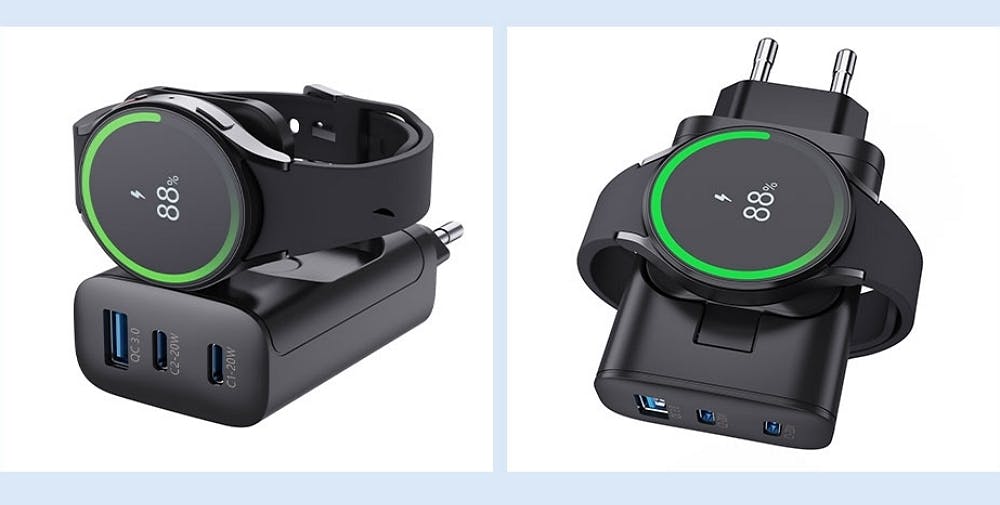 「4in1充電器」があれば、アダプターに3つのポートがついているのでコンセントが充電器で占領されることなく、ウォッチは専用ケーブルを用意しなくても充電できます。