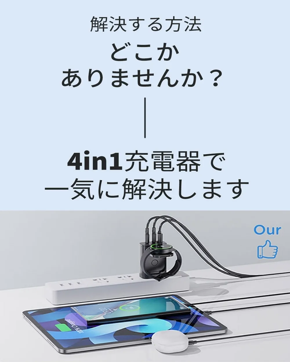 4in1充電器でごちゃごちゃとなっているコンセント周りから解放されてみてください。