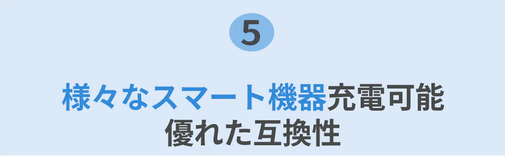 iPhone、iPadなどApple社製品だけでなく、他の会社のスマホやタブレット、イヤホンなども充電できるので、違う機種、違う会社のデバイスでも充電できます。