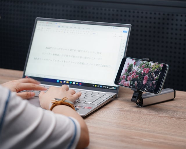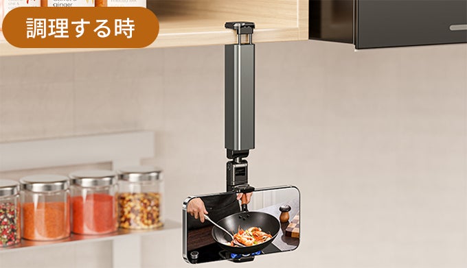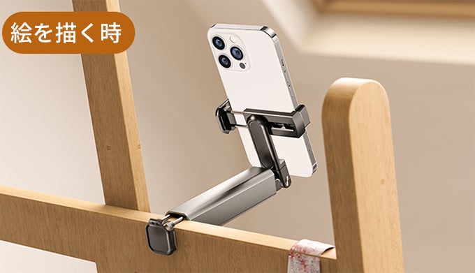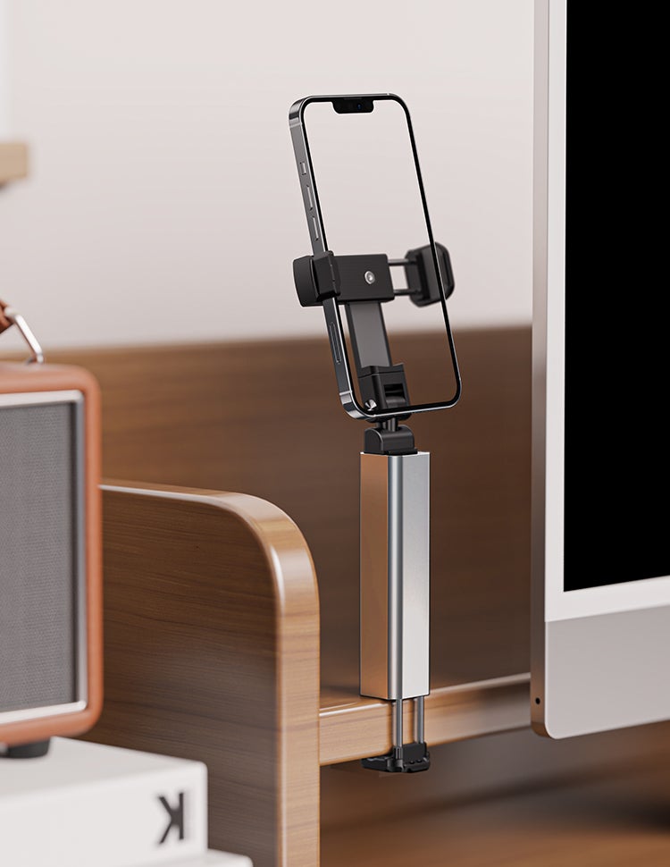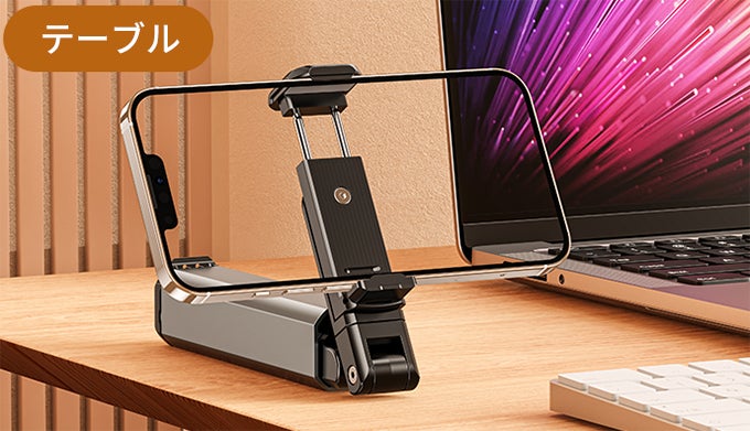 PCやタブレットの横にスマホをセットし、YouTubeやTIKTOKなどで動画を見ながらPC作業をするのにも最適です。テレビ会議やオンライン講義の撮影にも使用できます。