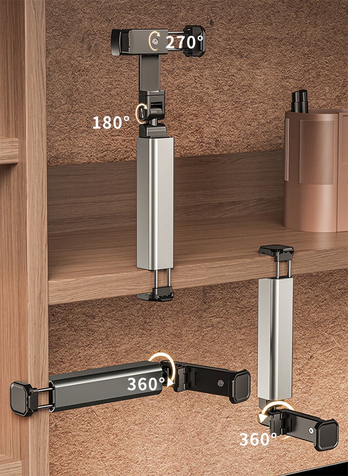 180度調整可能アーム&270度回転ホルダーで、自分の目線に合わせて角度が自由に調節できます。自撮り棒・スタンドなど、スマホの使用を最大限に拡張します。