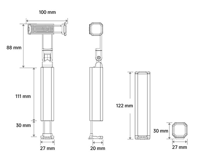 本体を手持ちすることで自撮り棒として、街撮り、動画撮影や写真撮影などのシーンで活躍します。