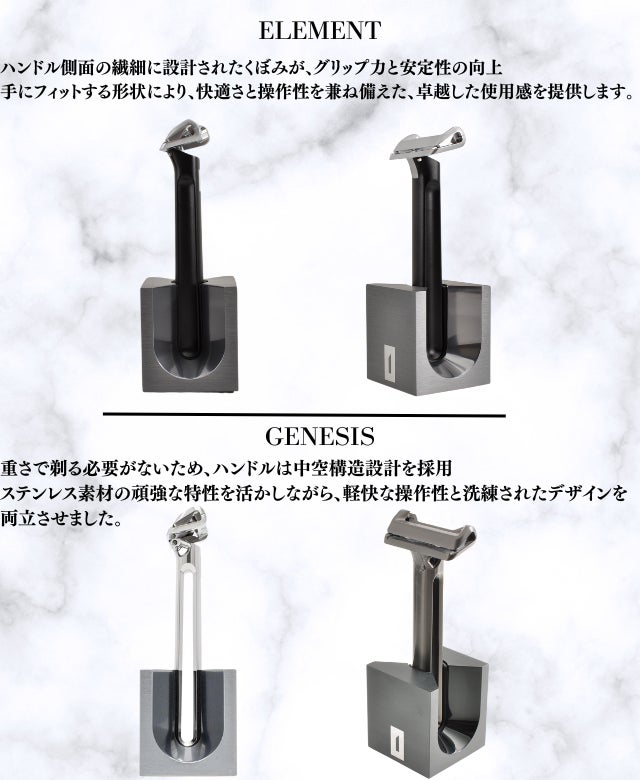 machi-yaで実施する今回のキャンペーンでは、高耐久性の新替刃とALLメタル製のシェーバーに絞り、最新機種「ELEMENT」と最高機種「GENESIS」をご紹介します。