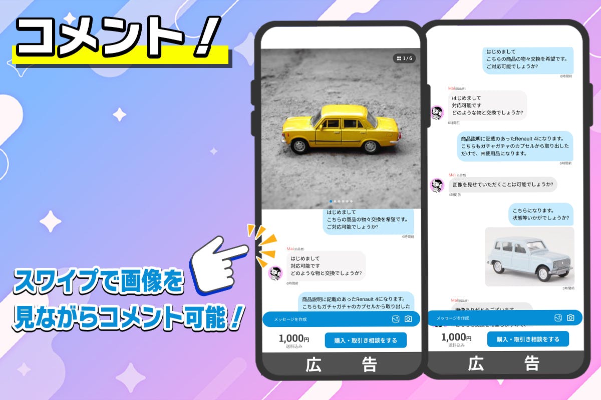 他のアプリではない機能で、スワイプ1つで画像を表示しながらコメントができます。