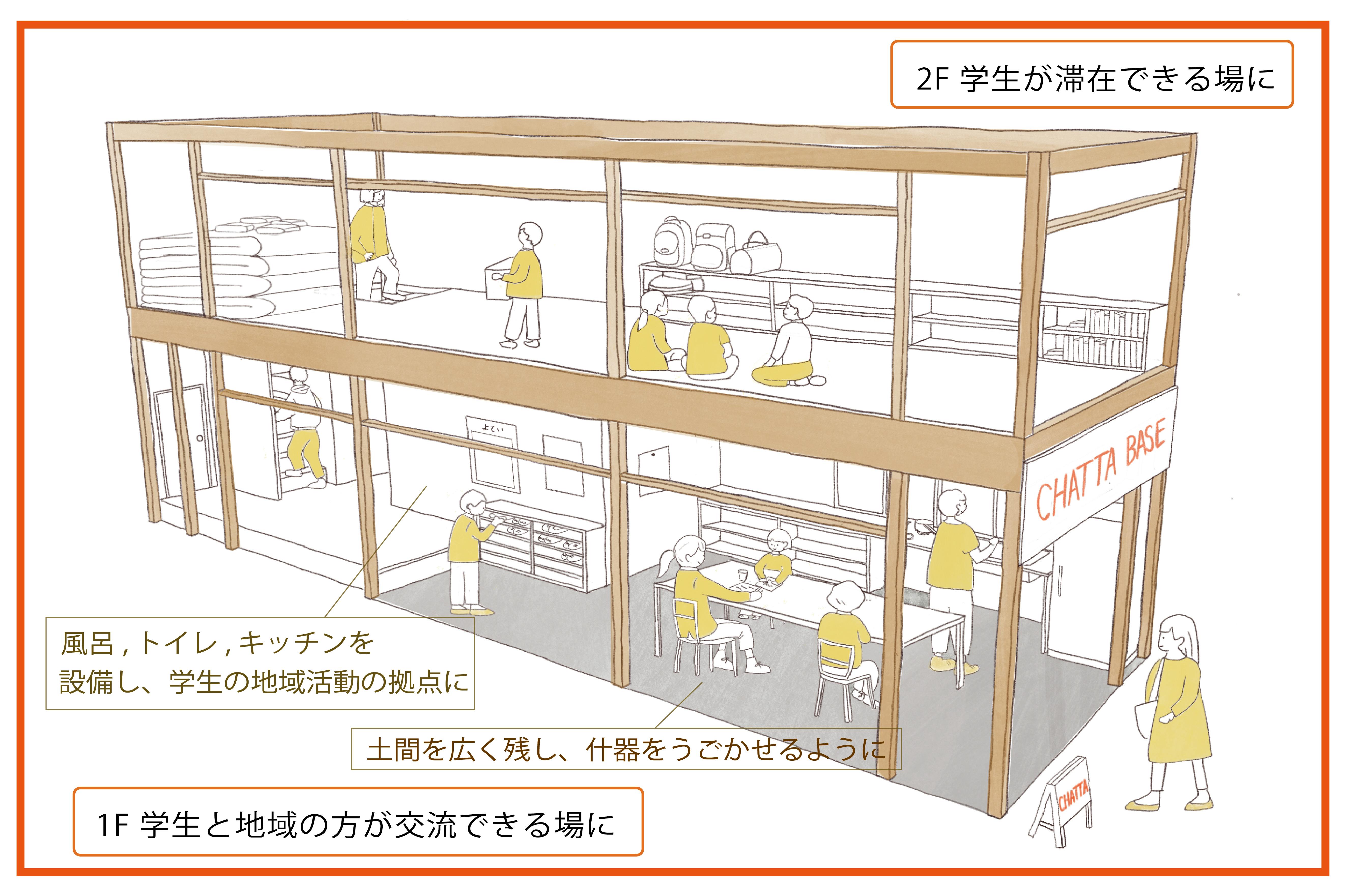 そこで、学生と地域の方が力を合わせて「CHATTA BASE」といったみんなの拠点をつくろうと奮起しました。